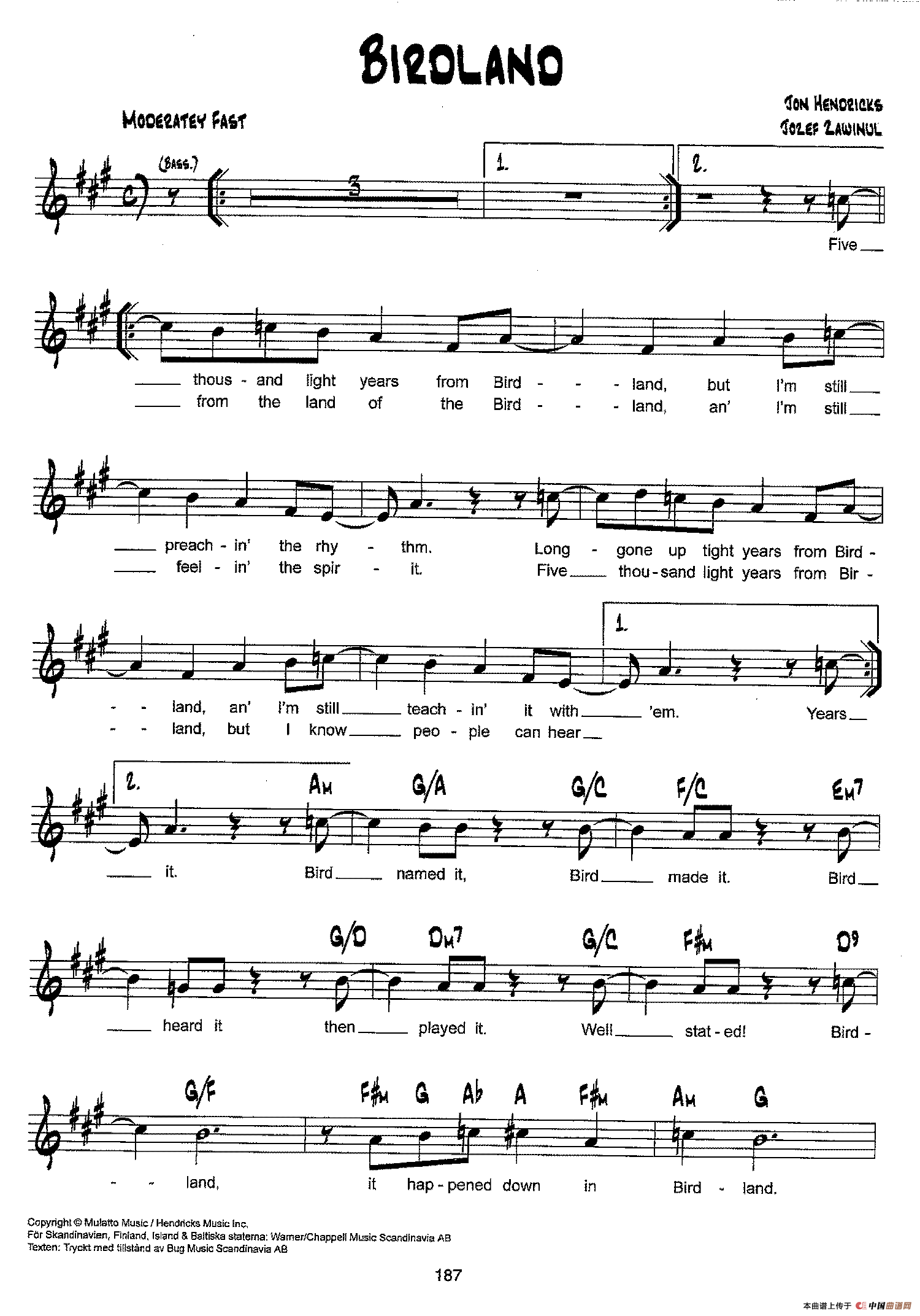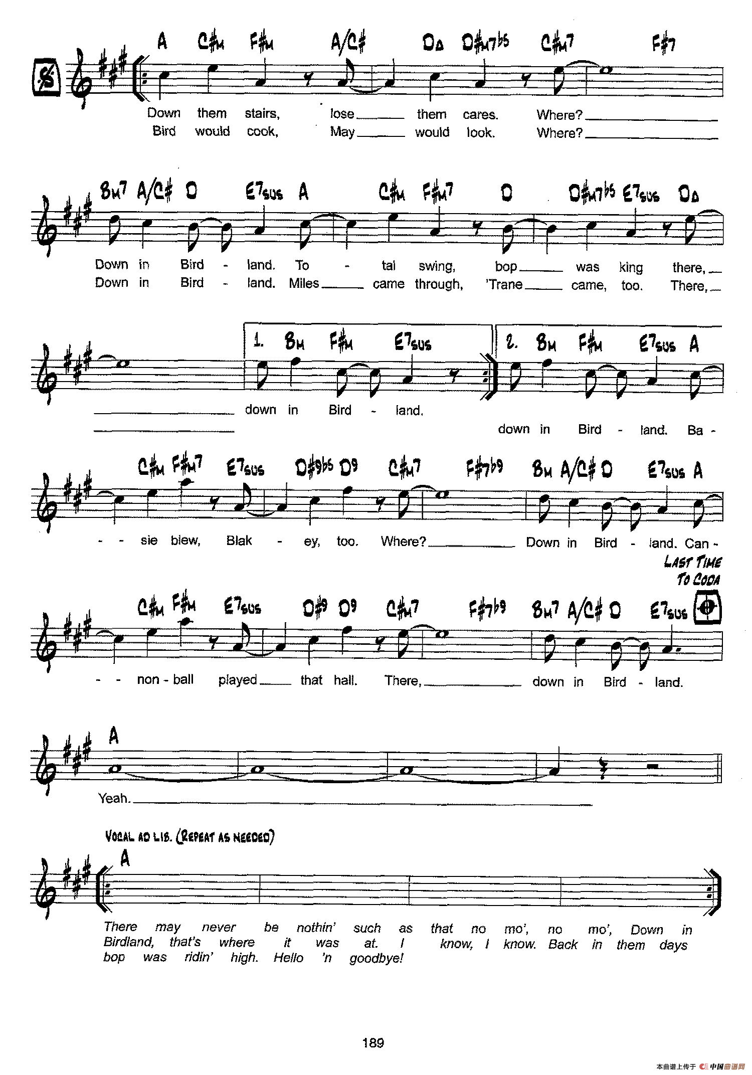 降B爵士乐谱:BIRDLAND