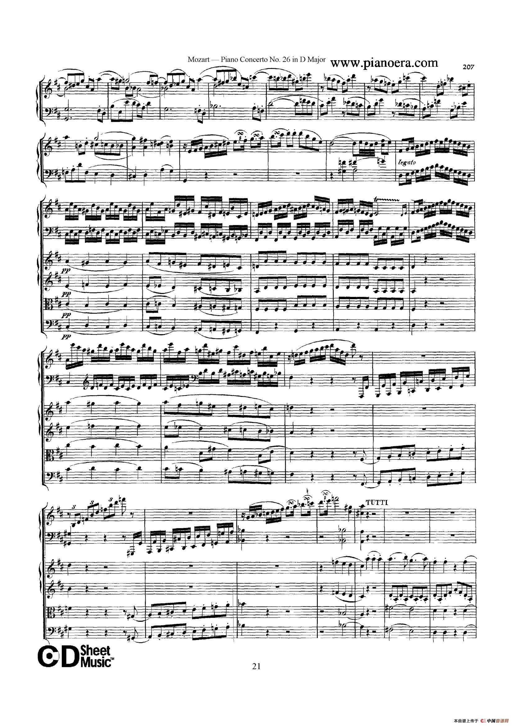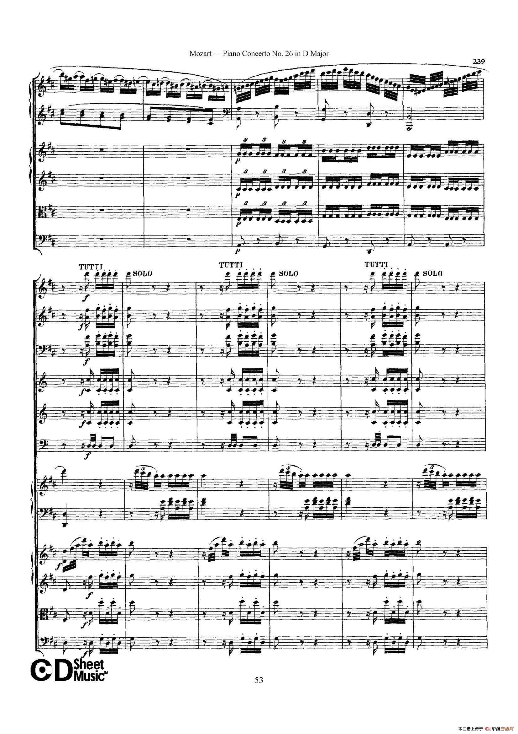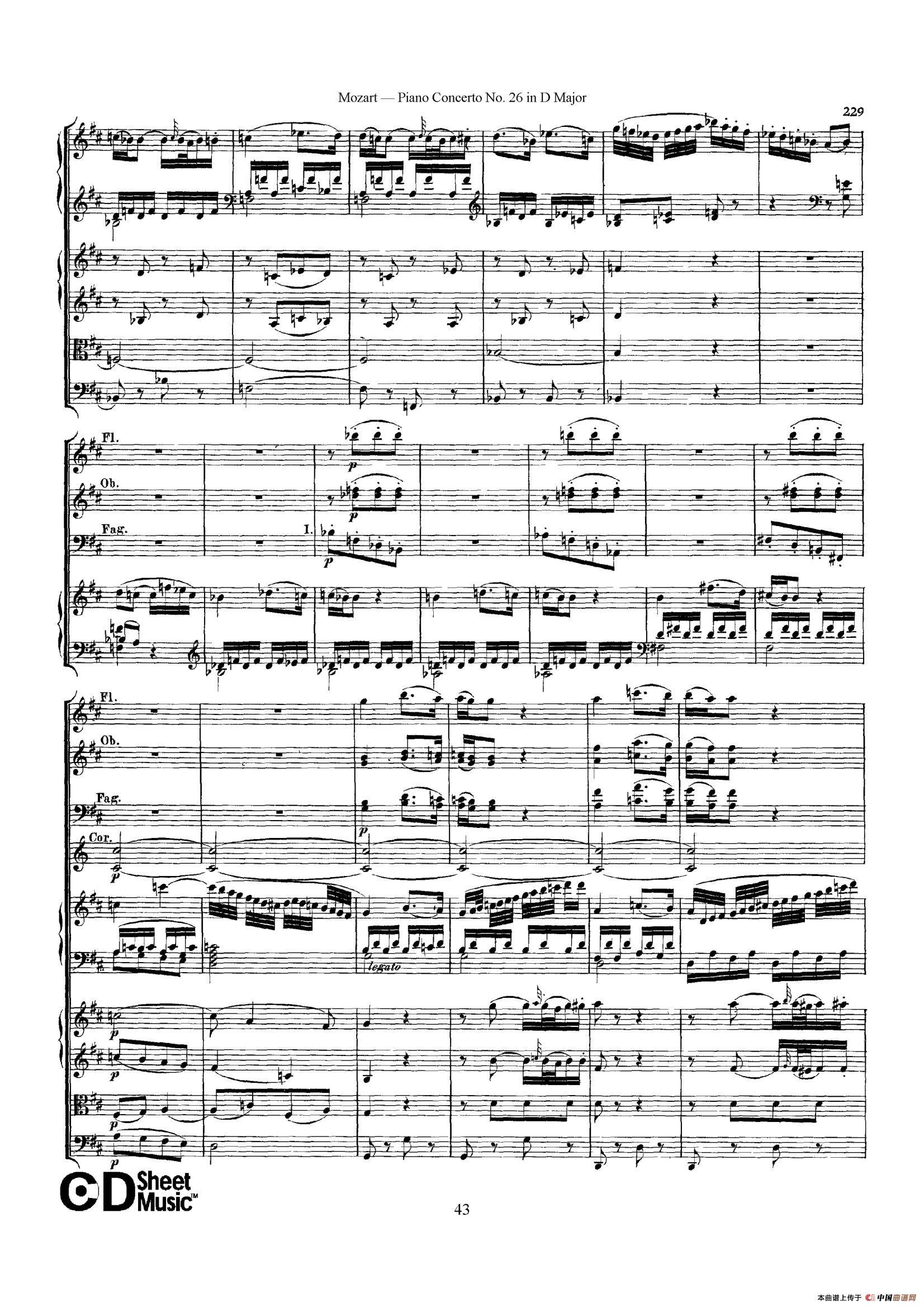 Piano Concerto No.26 in D Major K.537(D大调第二十六钢琴协奏曲总谱)相关五线谱