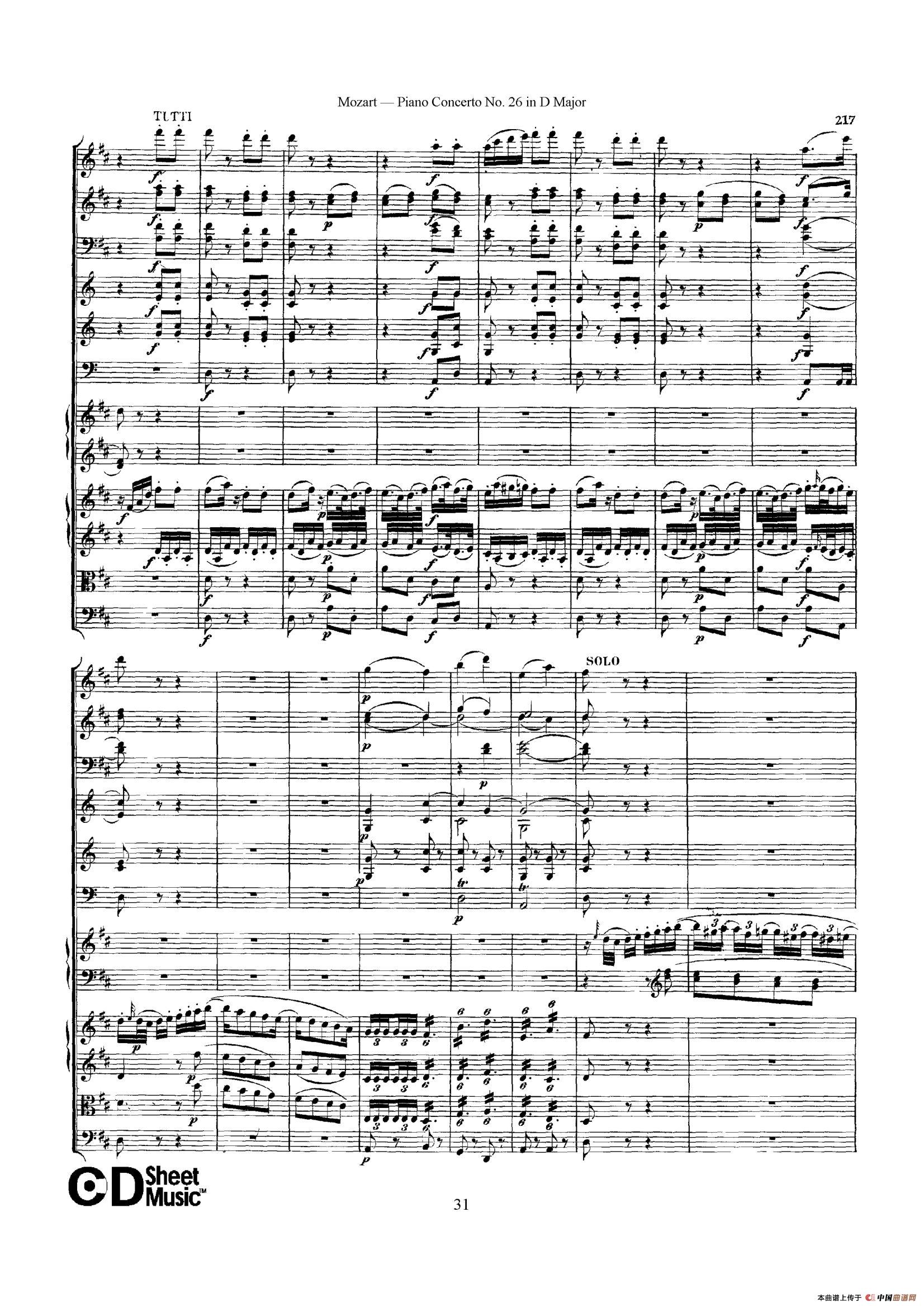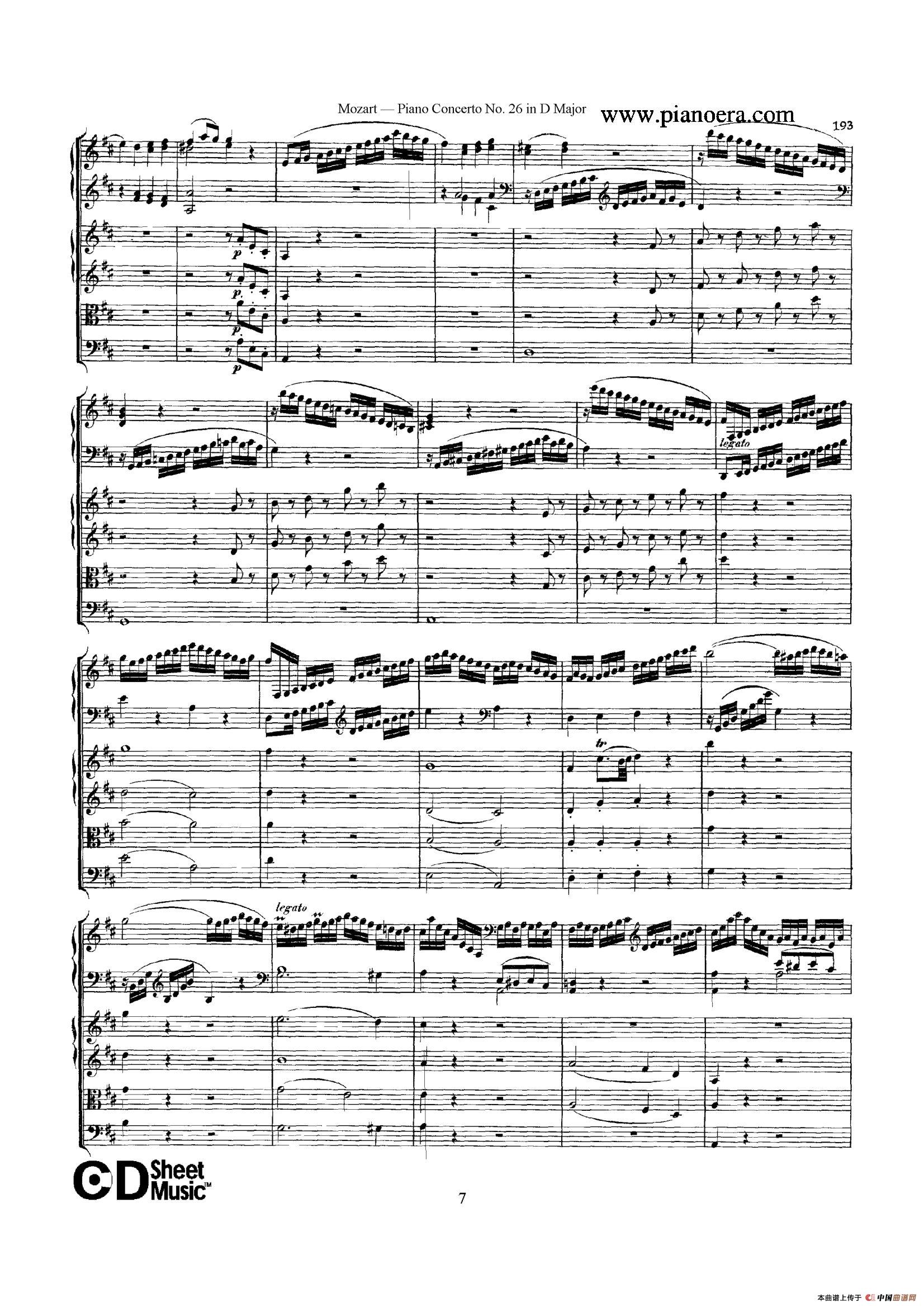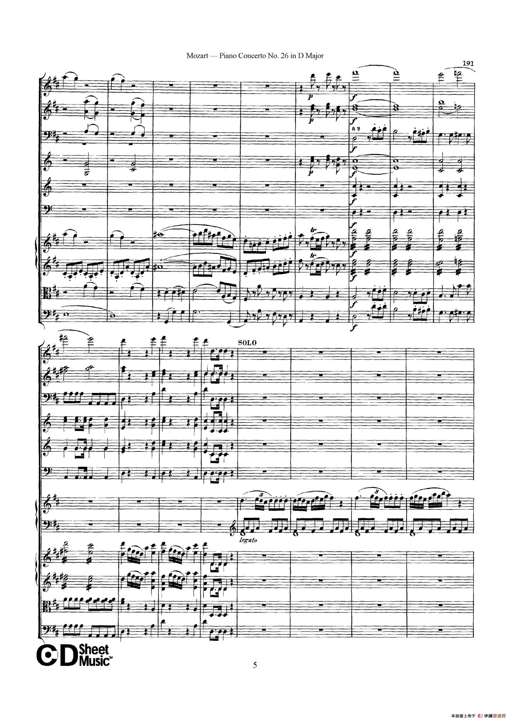 Piano Concerto No.26 in D Major K.537(D大调第二十六钢琴协奏曲总谱)相关五线谱