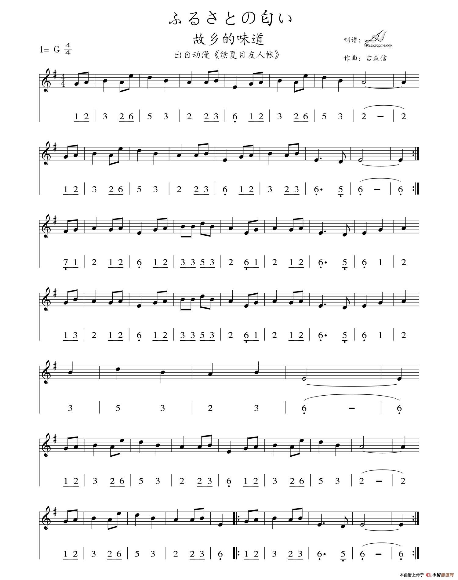ふるさとの匂い(故乡的味道)(线简谱对照版)