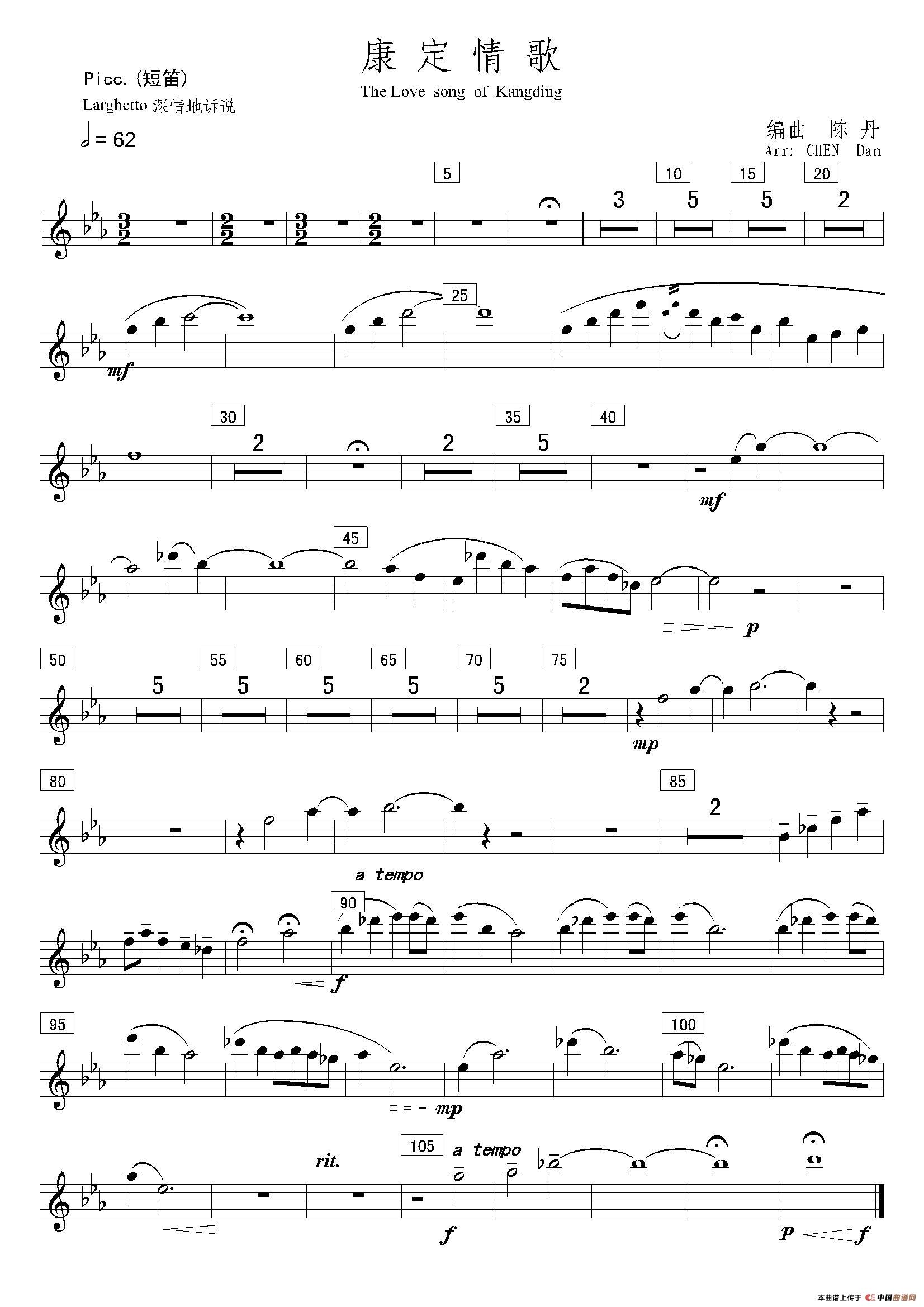陈丹 编曲曲谱推荐康定情歌(第二中音萨克斯分谱)康定情歌(低音巴松分谱)康定情歌(Ob. (欧勃)分谱)康定情歌(中音单簧管分谱)康定情歌(降B第二单簧管分谱)康定情歌(第一中音萨克斯分谱)康定情歌(降B次中音萨克斯分谱)康定情歌(总谱)康定情歌(打击乐·定音鼓分谱)康定情歌(第一、二次中音萨克斯分谱)康定情歌(降B第一单簧管分谱)康定情歌(降B第三单簧管分谱)康定情歌(第一.二长笛分谱)康定情歌(降B低音单簧管分谱)康定情歌(降E单簧管分谱)康定情歌(打击乐·三角铁、钢片琴、吊镲分谱)康定情歌(降E小低音萨克斯分谱)康定情歌(打击乐·大镲、大鼓、大锣分谱)康定情歌(降B低音萨克斯分谱)康定情歌(弦倍司分谱)