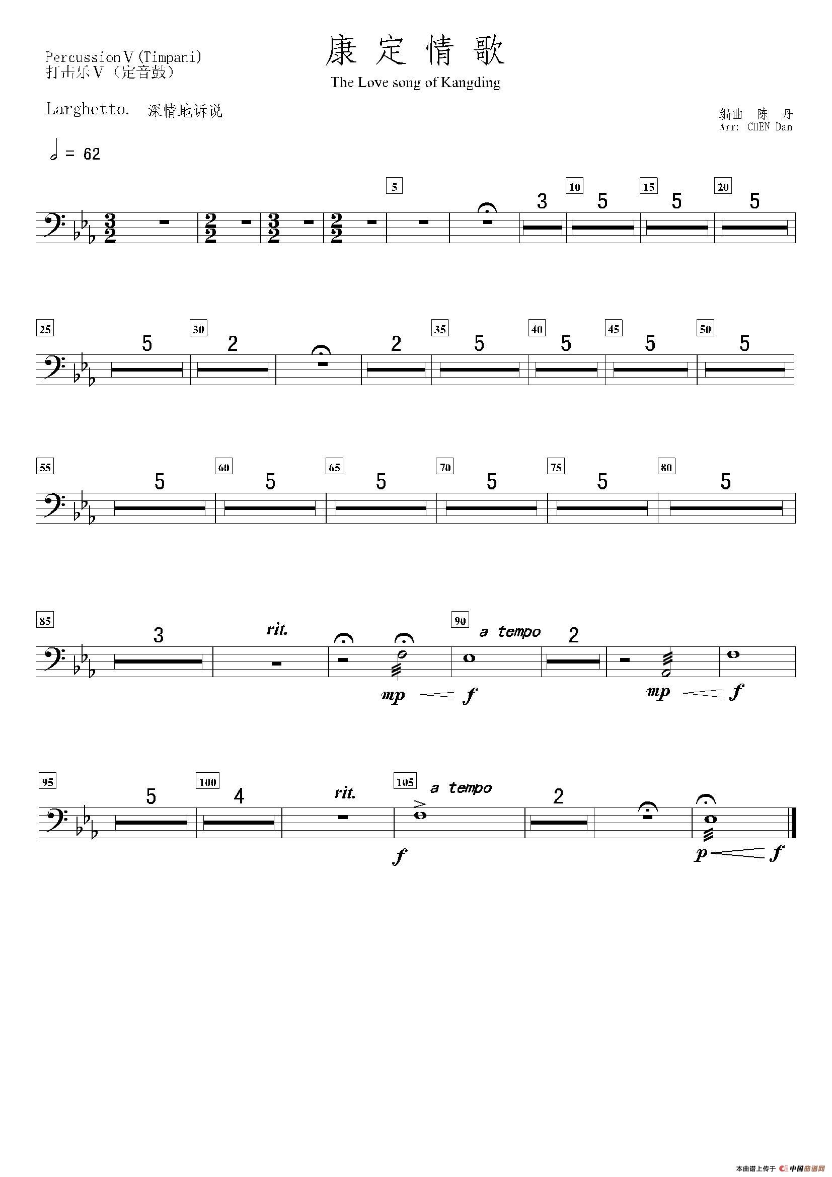 - 康定情歌(打击乐·三角铁、钢片琴、吊镲分谱)