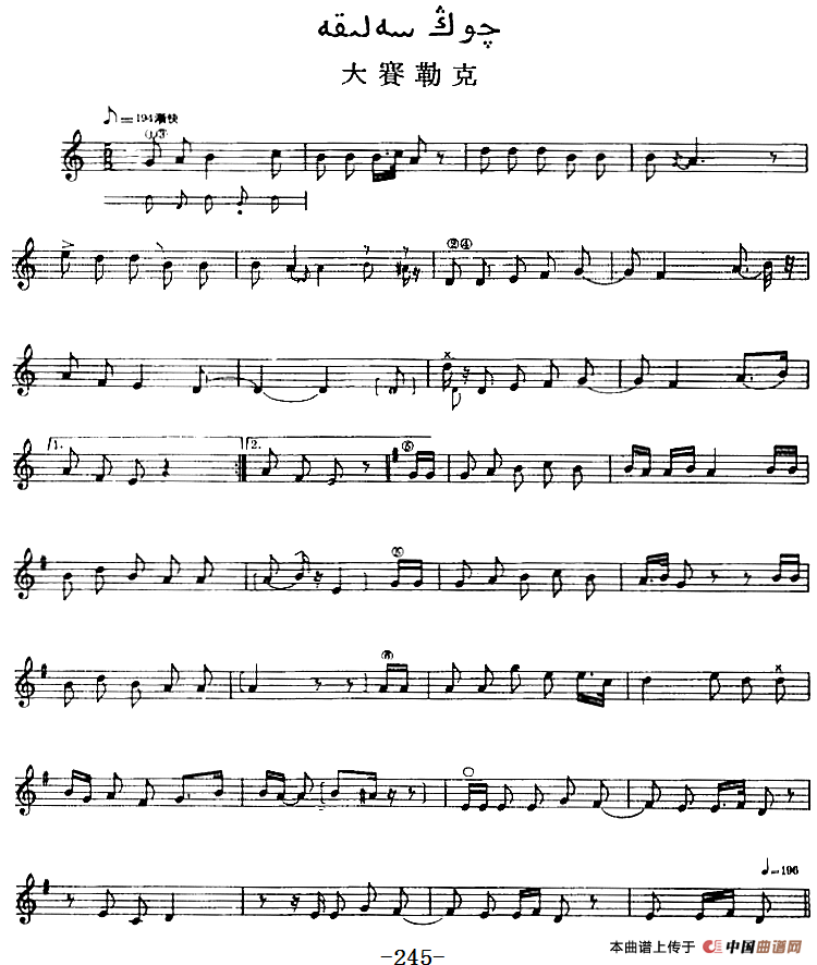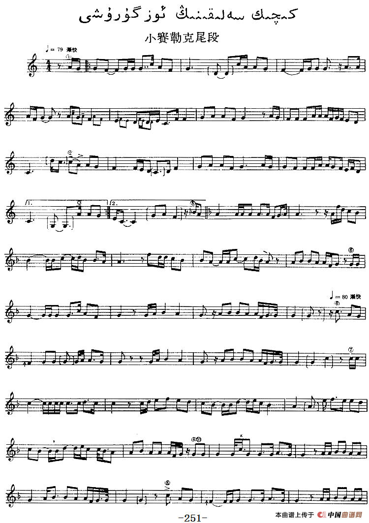十二木卡姆:Ⅴ 潘吉尕木卡姆 245——254(主旋律谱)相关五线谱