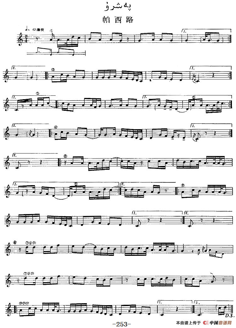 十二木卡姆:Ⅴ 潘吉尕木卡姆 245——254(主旋律谱)