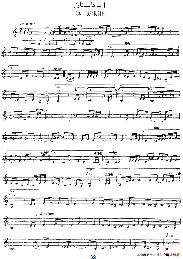 十二木卡姆:Ⅰ 拉克木卡姆 32——42(主旋律谱)