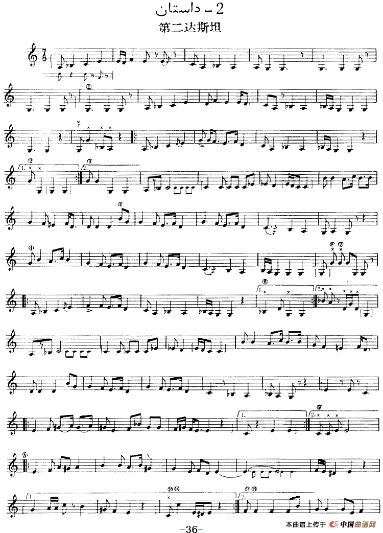 十二木卡姆:Ⅰ 拉克木卡姆 43——47(主旋律谱)