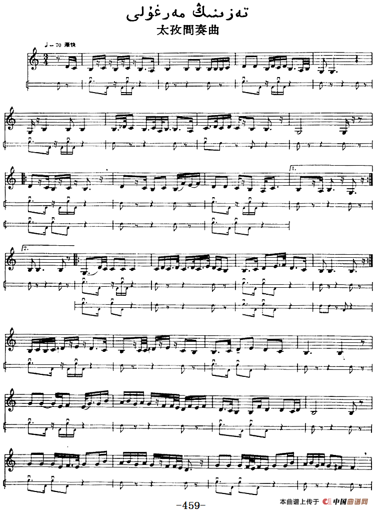 十二木卡姆:Ⅹ 纳瓦木卡姆 451——461(主旋律谱)