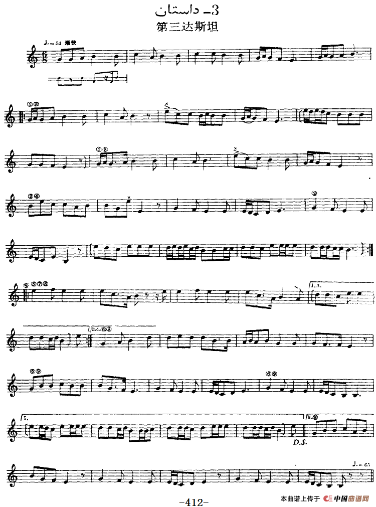 十二木卡姆:Ⅷ 乌夏克木卡姆 401——411(主旋律谱)