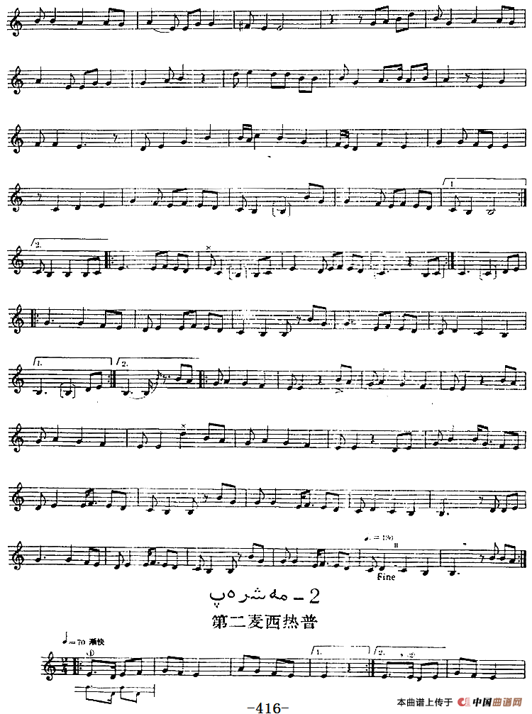 十二木卡姆:Ⅷ 乌夏克木卡姆 412——418(主旋律谱)相关五线谱