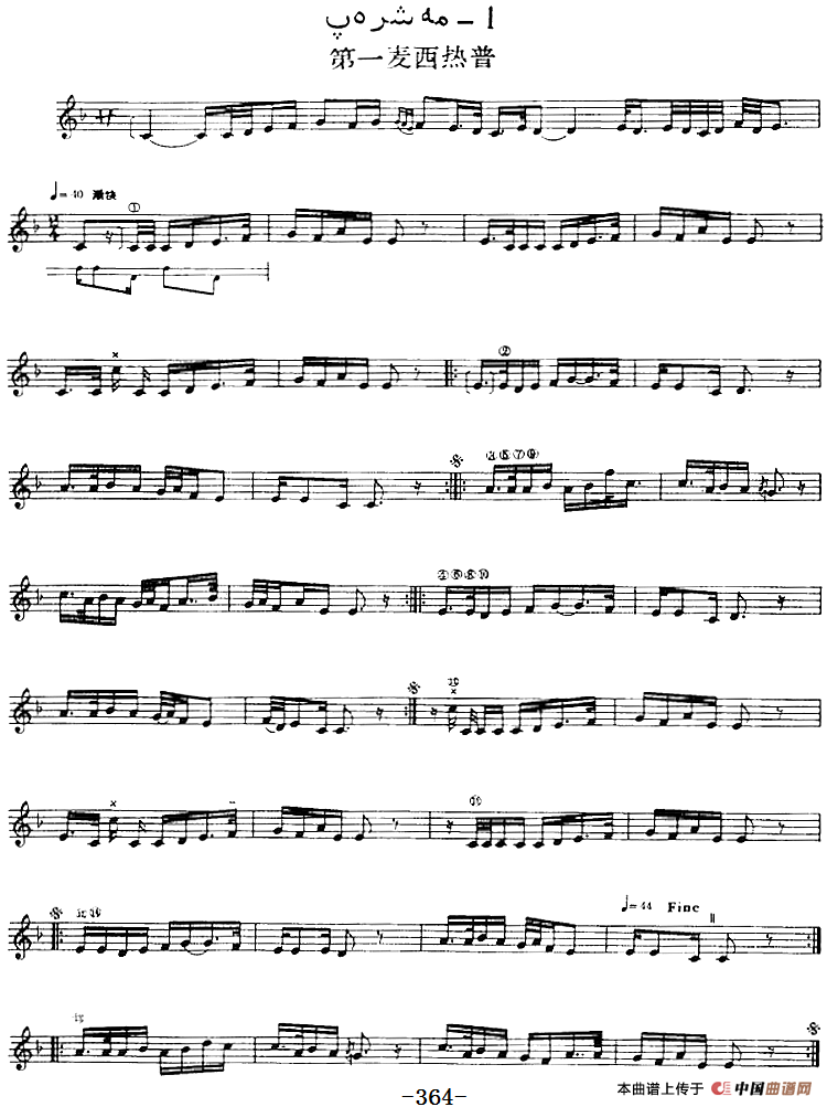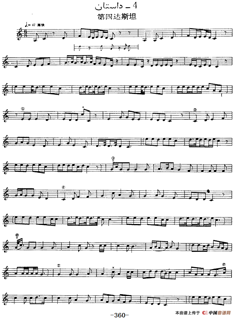 十二木卡姆:Ⅶ 埃介姆木卡姆 348——357(主旋律谱)