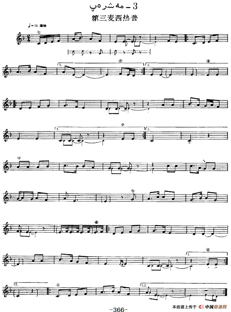 十二木卡姆:Ⅶ 埃介姆木卡姆 358——367(主旋律谱)