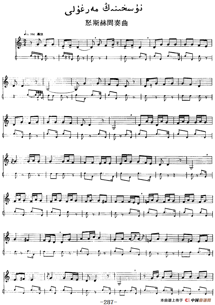 十二木卡姆:Ⅵ 乌扎勒木卡姆 287——297(主旋律谱)相关五线谱