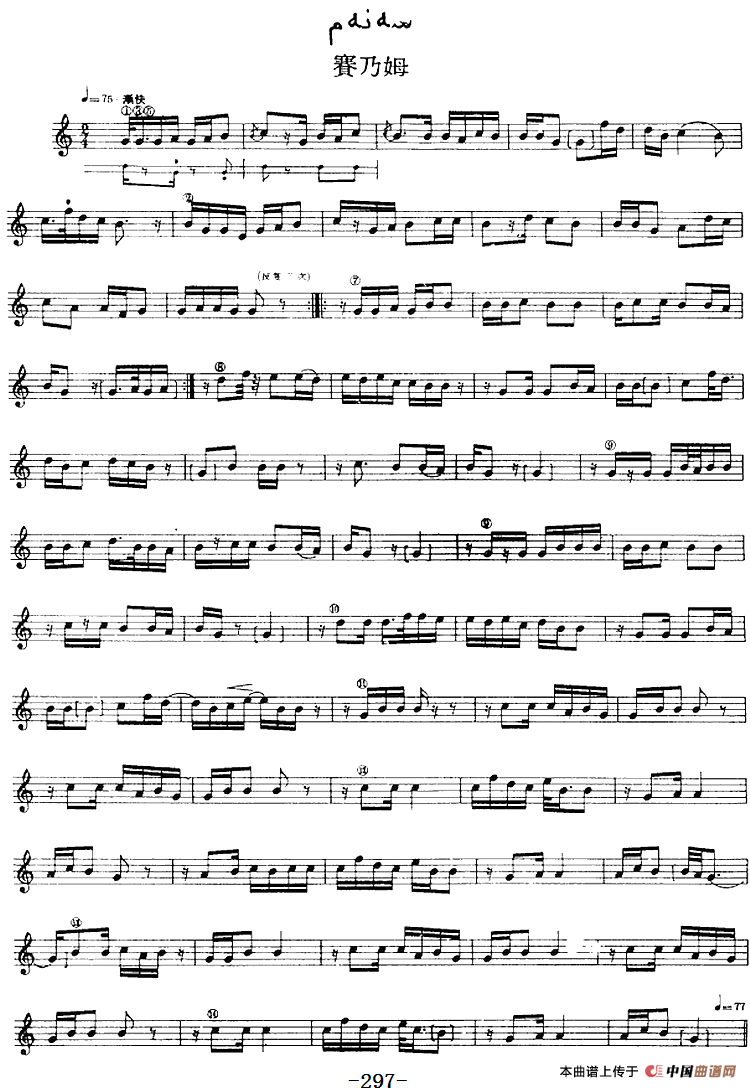 十二木卡姆:Ⅵ 乌扎勒木卡姆 287——297(主旋律谱)