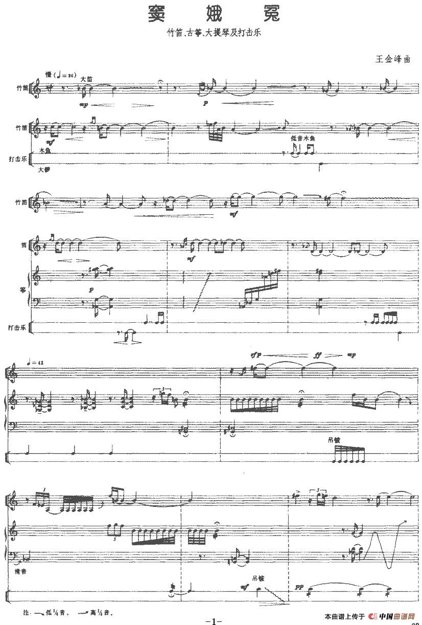 窦娥冤(竹笛、古筝、大提琴及打击乐)相关五线谱