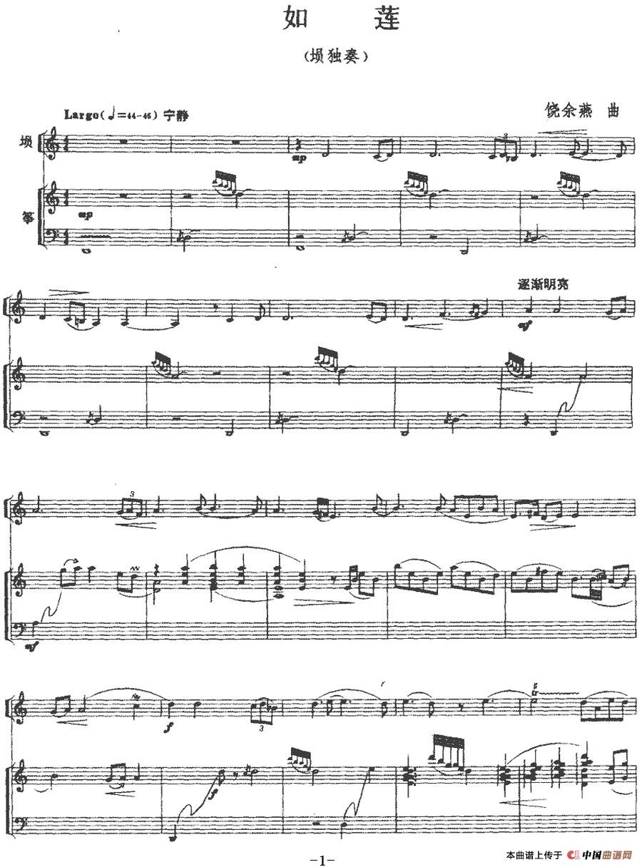 如莲(埙+古筝)相关五线谱