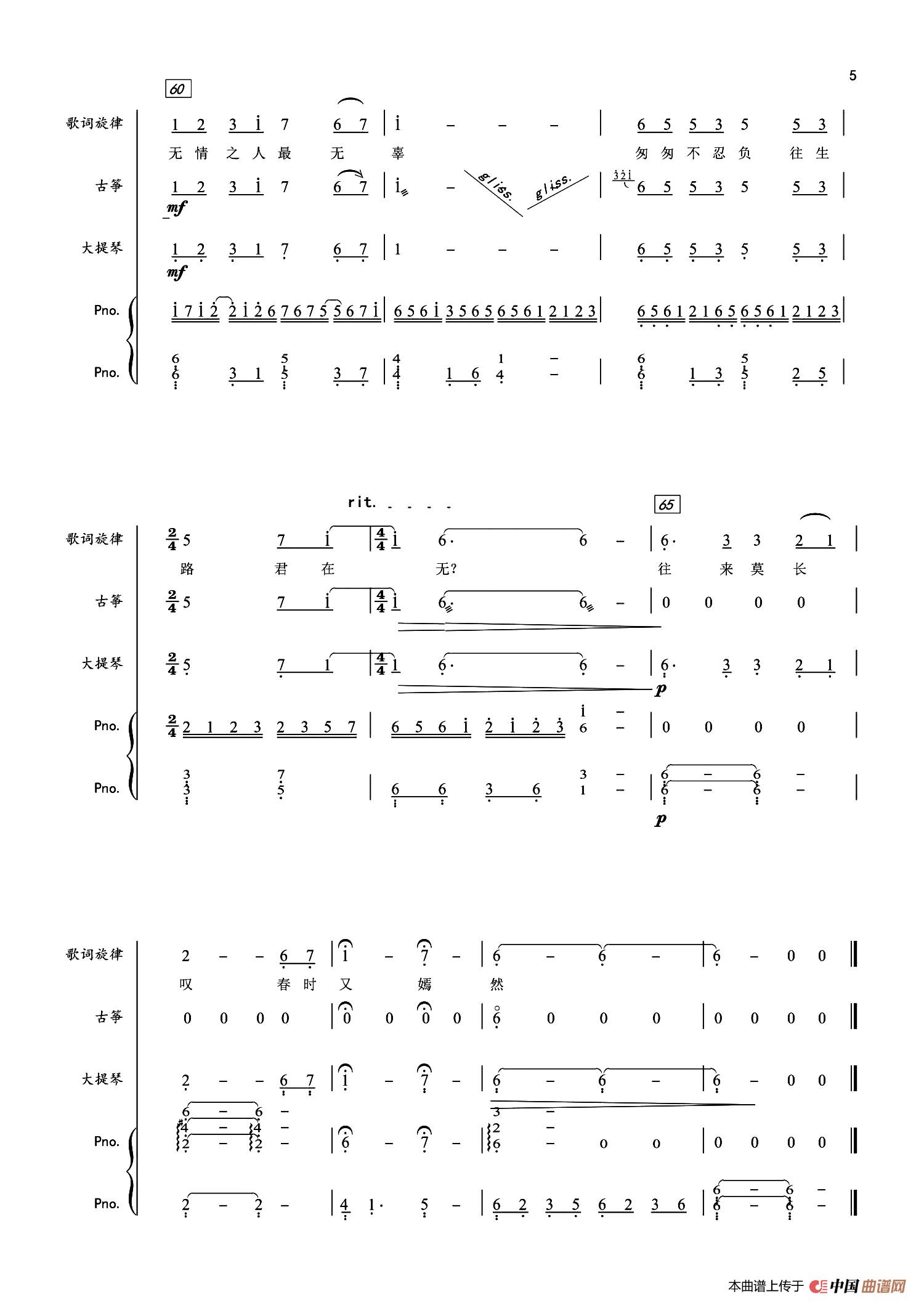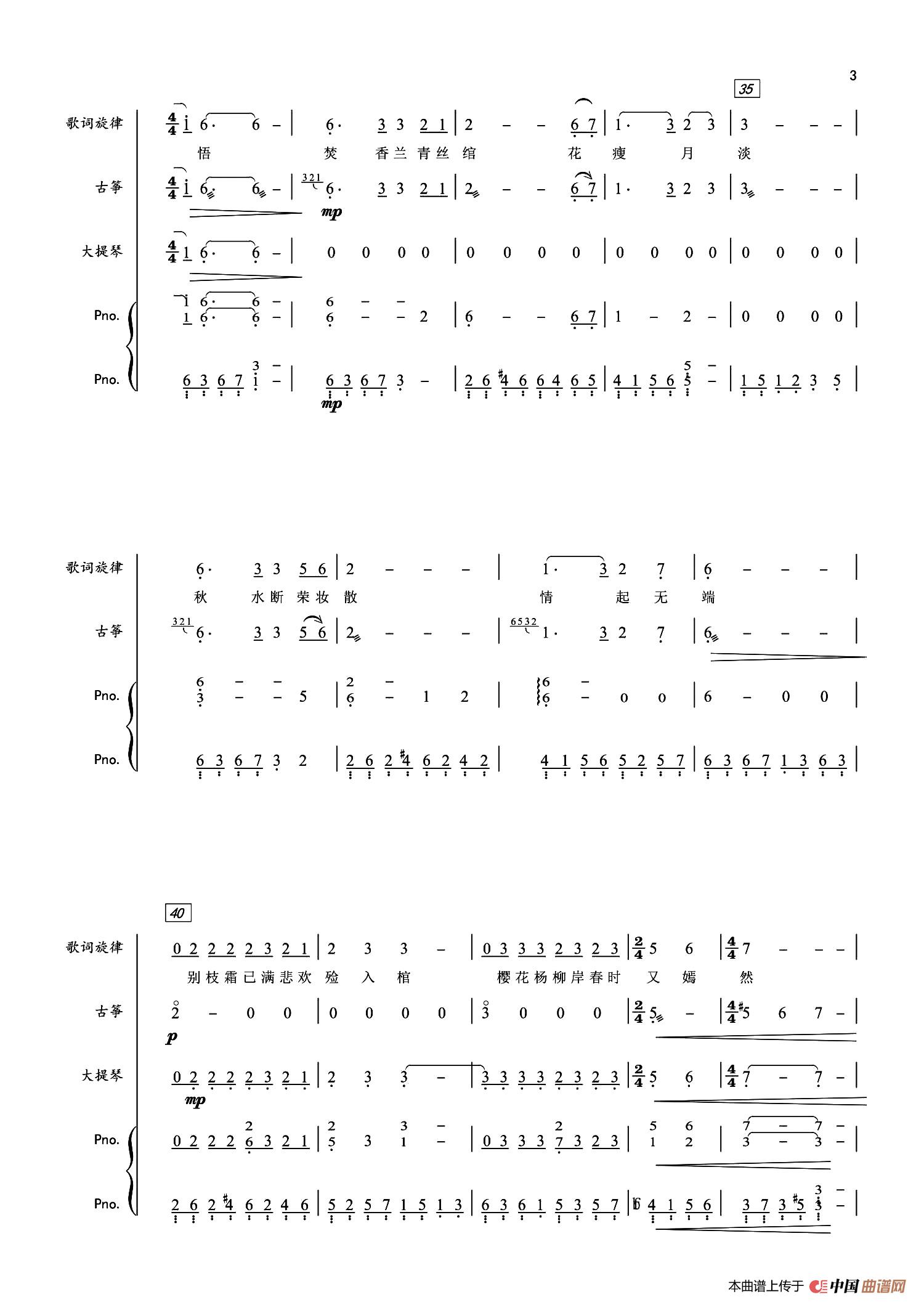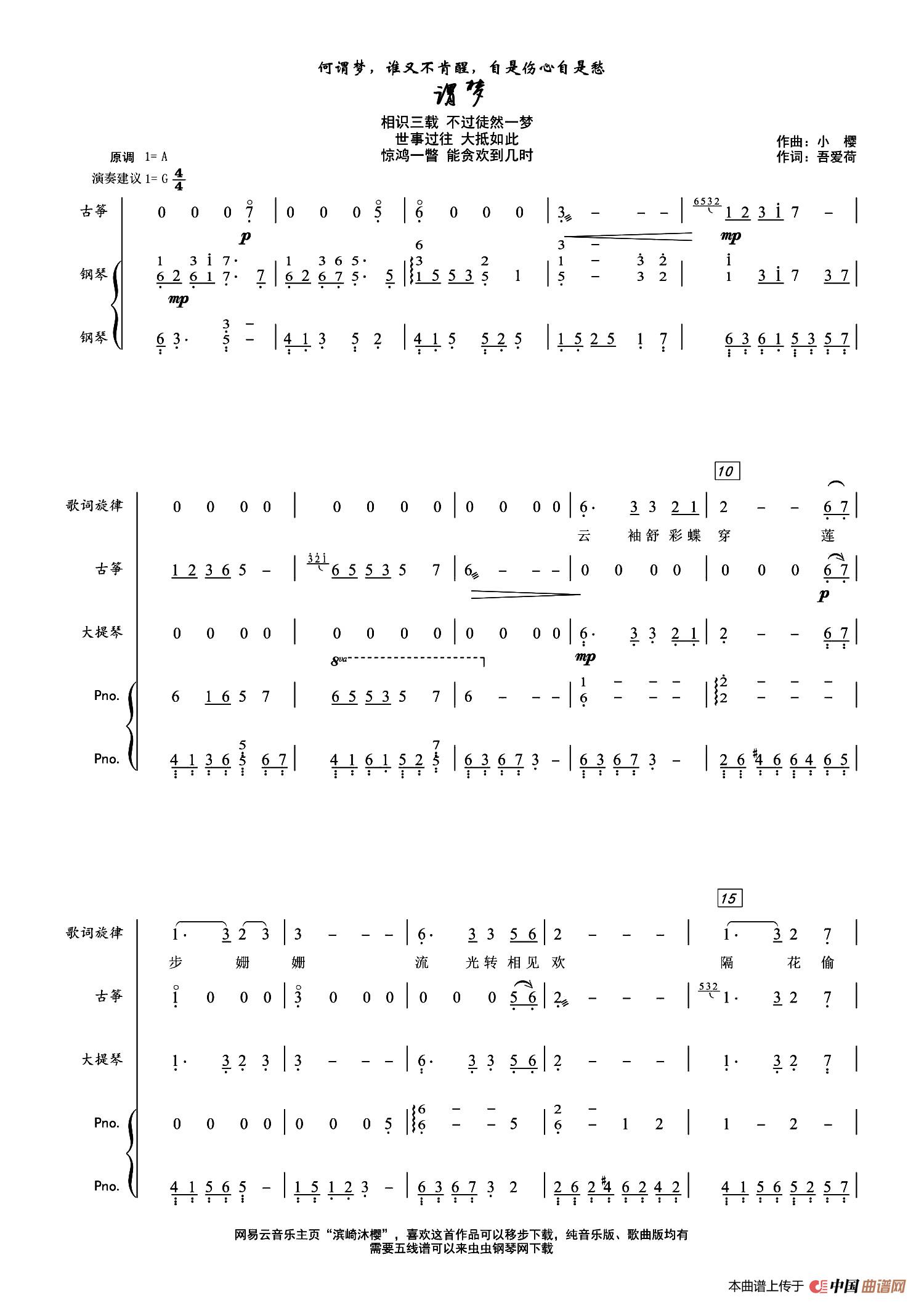 谓梦(古筝&大提琴&钢琴)相关五线谱