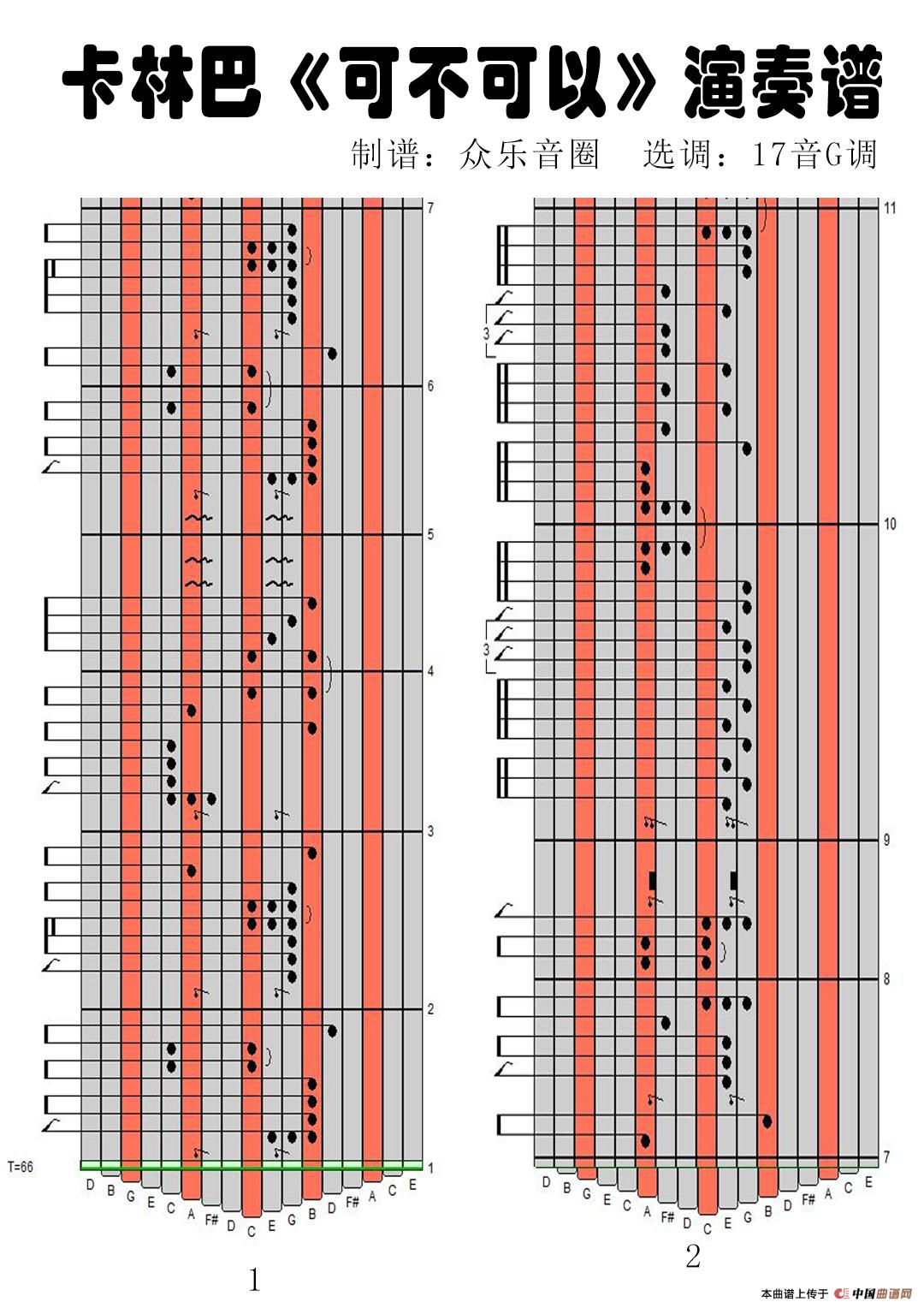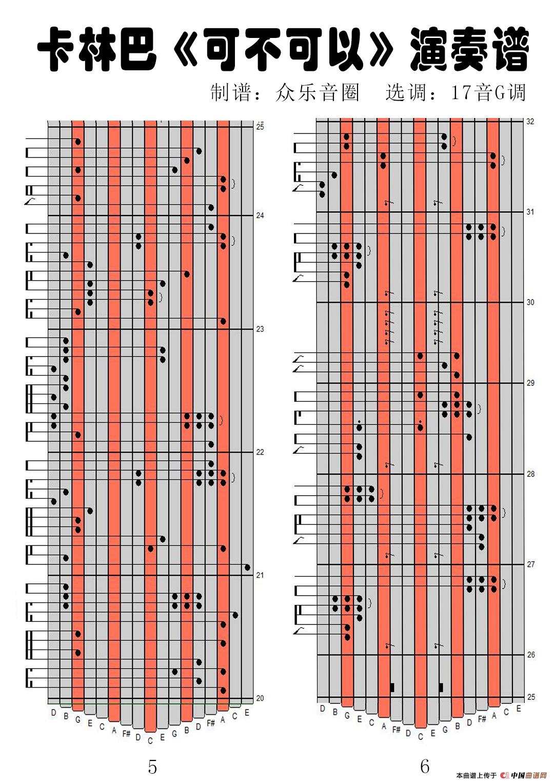 可不可以(17音卡林巴琴演奏谱)相关五线谱