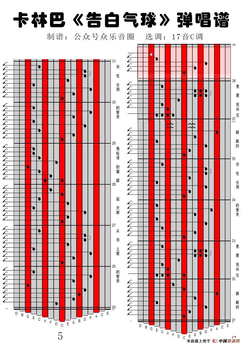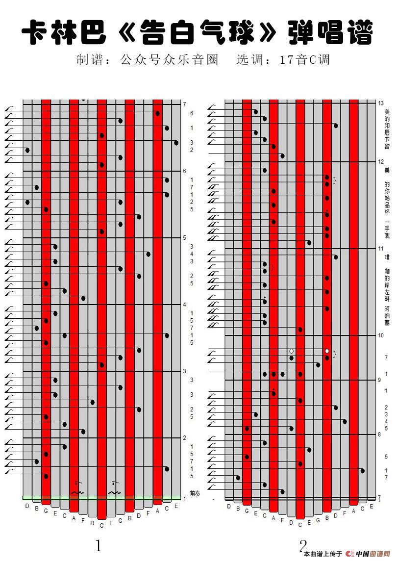 告白气球(17音卡林巴琴谱、弹唱演奏)