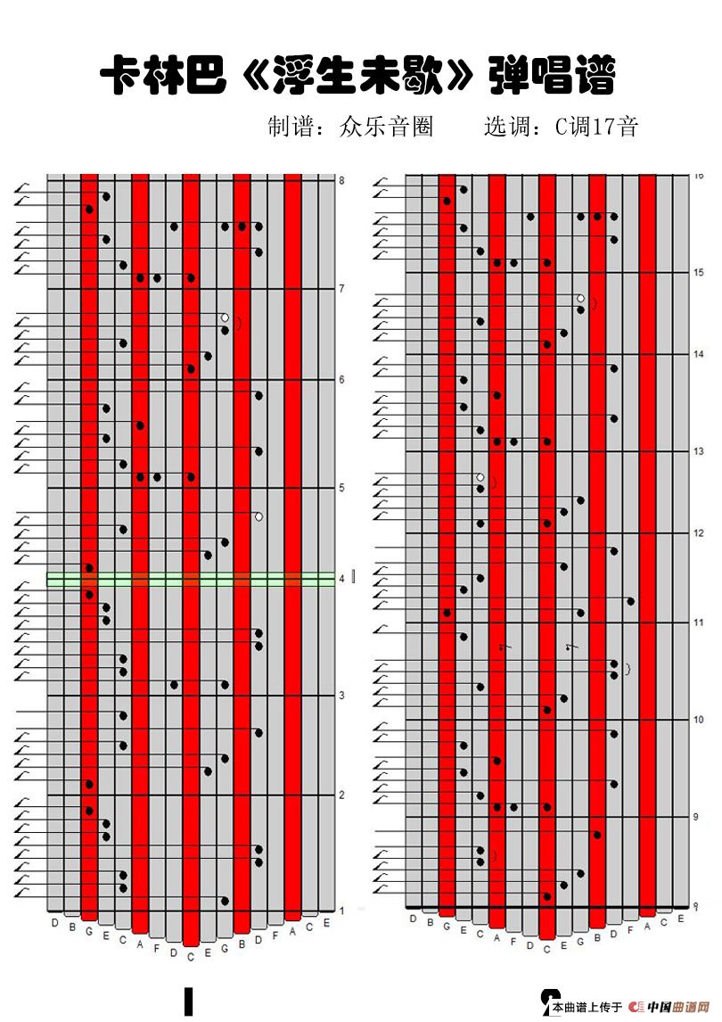 浮生未歇(17音卡林巴琴谱、弹唱演奏)