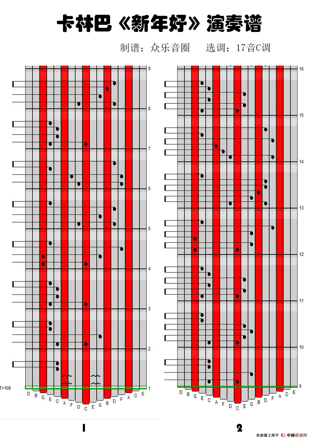 新年好(拇指琴卡林巴琴演奏谱)相关五线谱