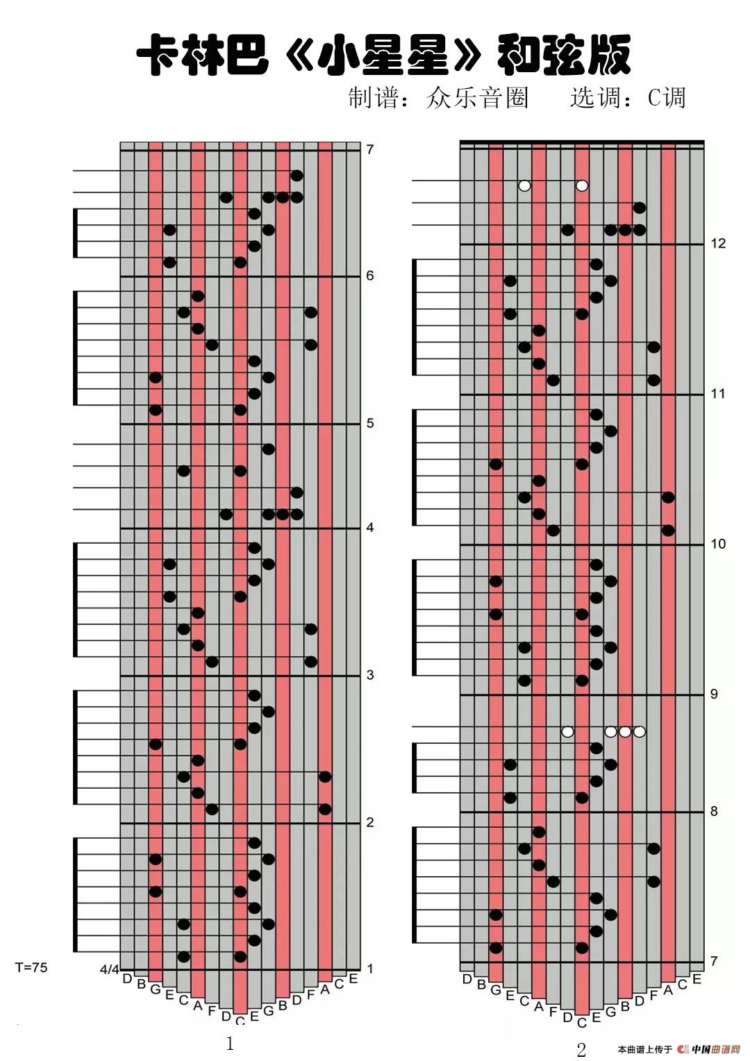 小星星和弦版(拇指琴卡林巴琴演奏谱)相关五线谱