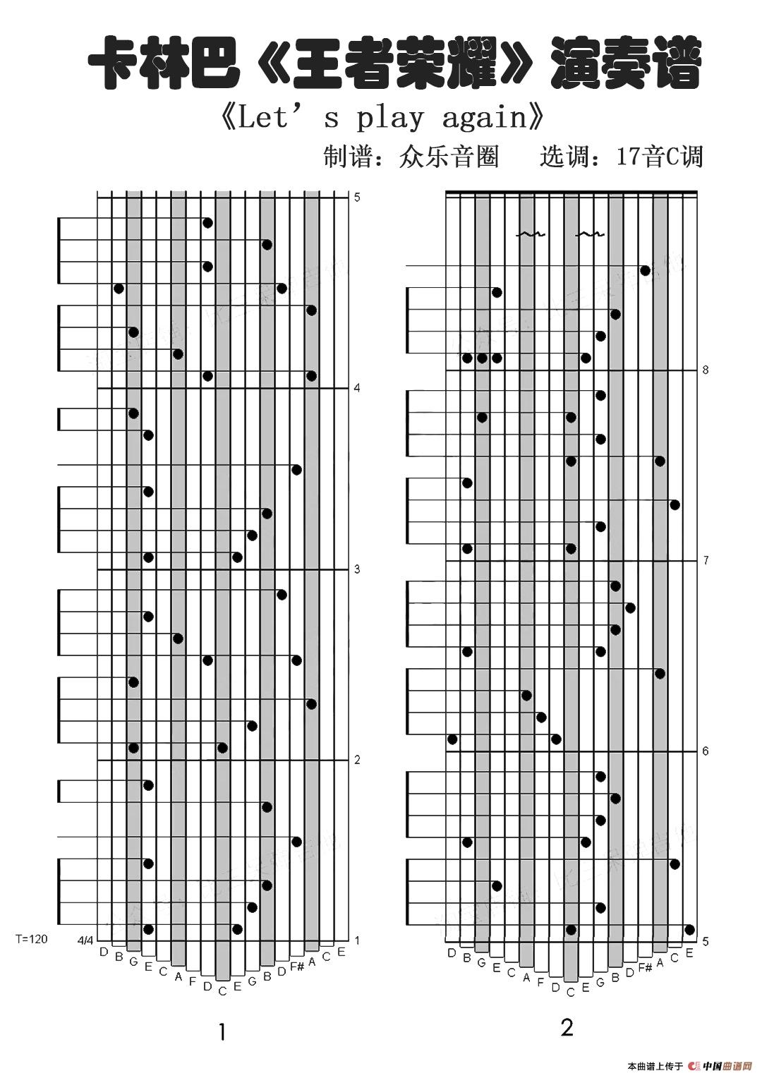 王者荣耀 Let's Play Again(拇指琴卡林巴琴演奏谱)