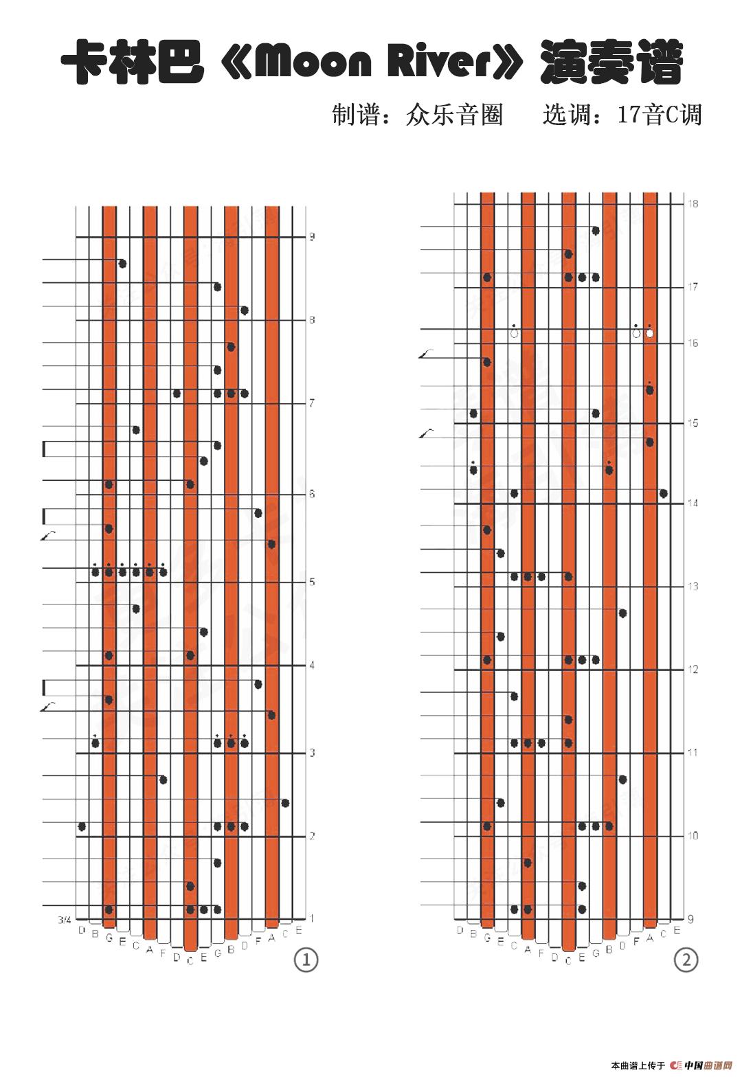 《Moon River》蒂凡尼的早餐(拇指琴卡林巴演奏谱)相关五线谱