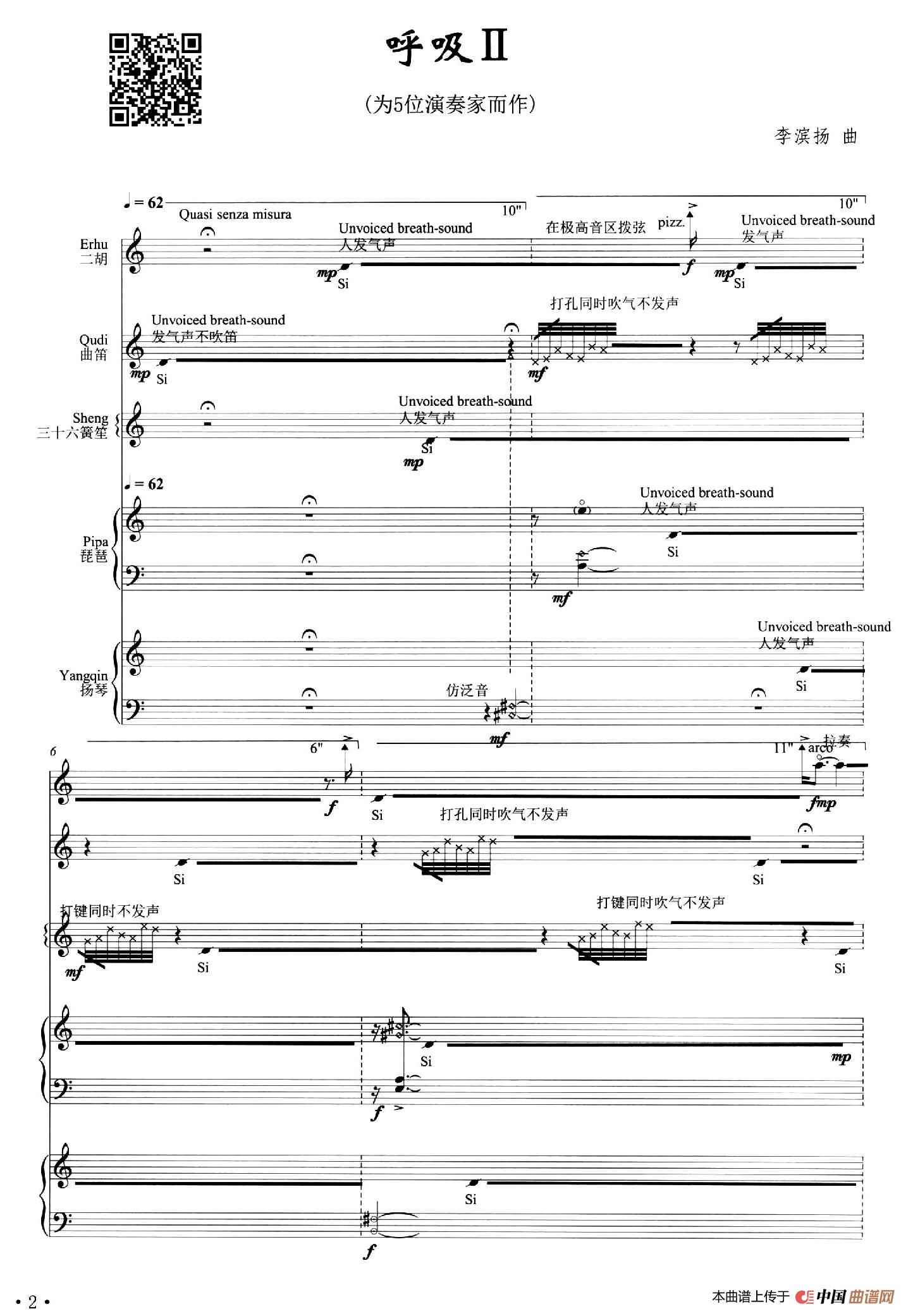 呼吸Ⅱ(民乐五重奏)相关五线谱
