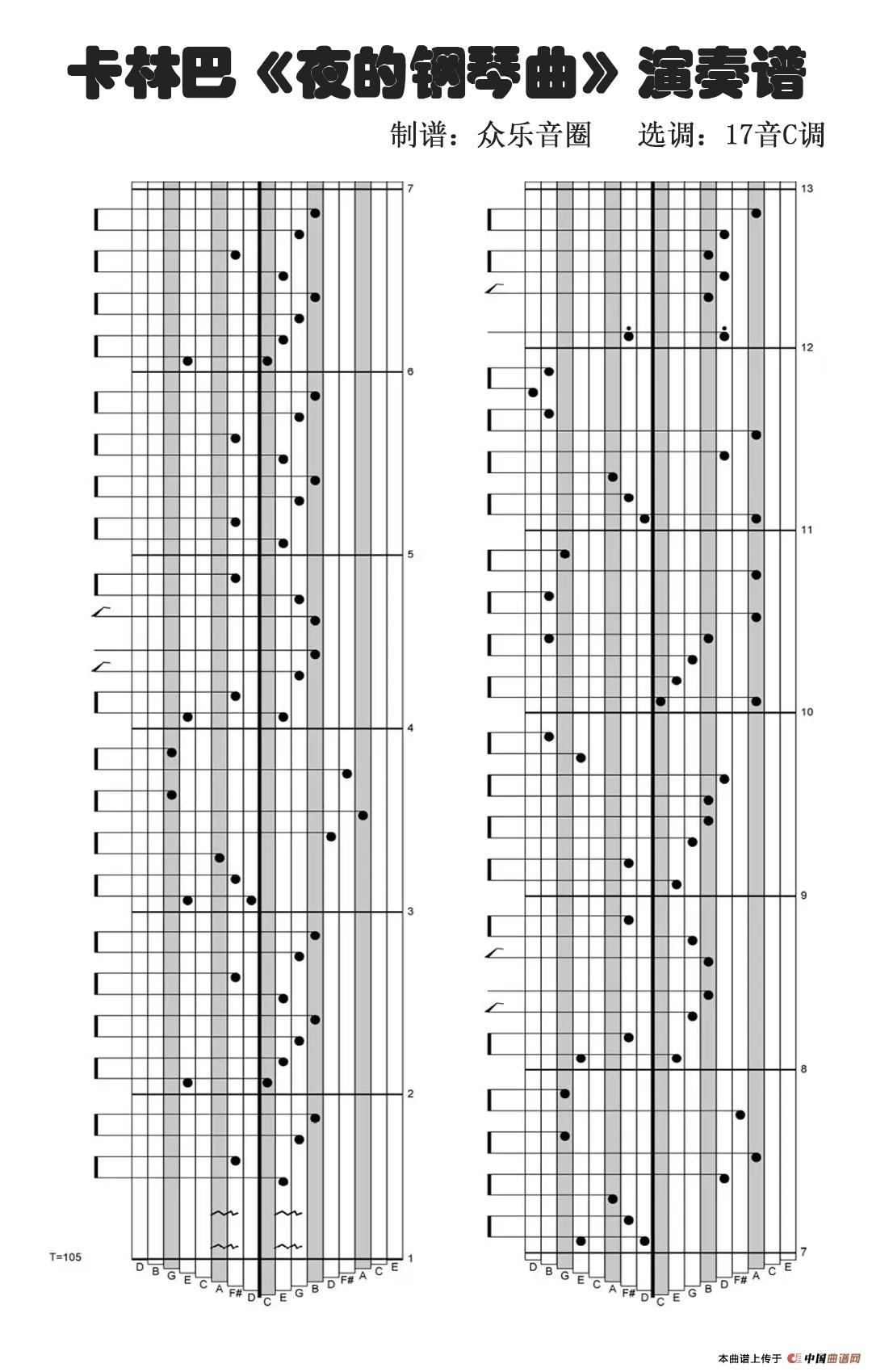 夜的钢琴曲五(拇指琴卡林巴琴演奏谱)