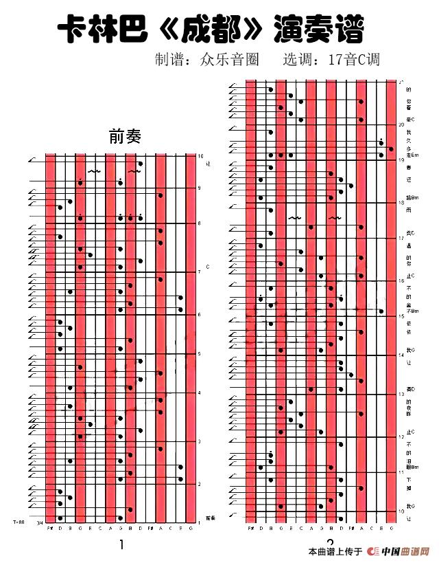 成都(拇指琴卡林巴琴演奏谱)相关五线谱