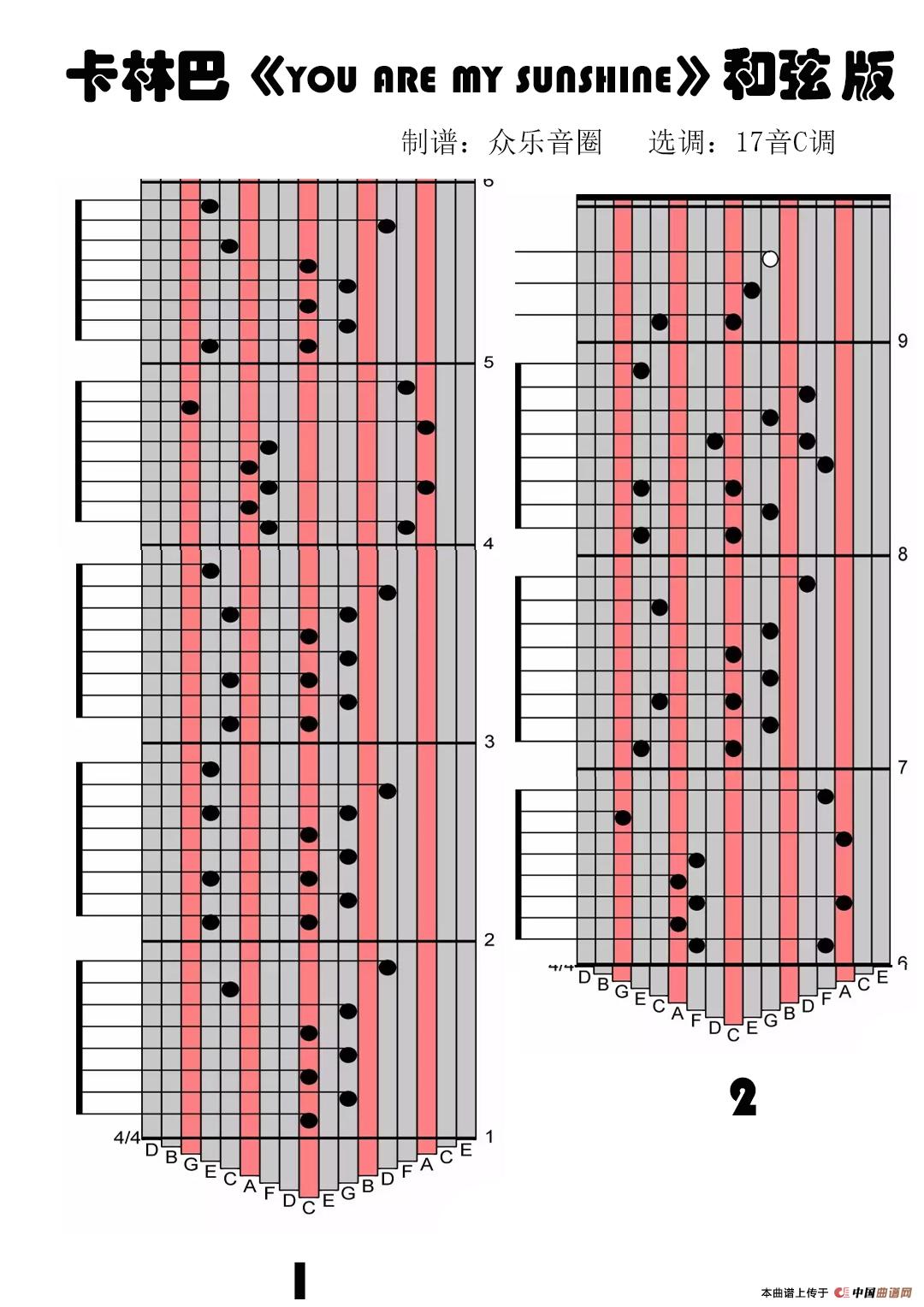 you 和弦版(拇指琴卡林巴琴演奏谱)相关五线谱