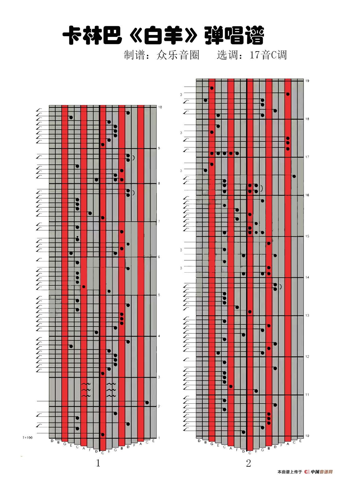 白羊(拇指琴卡林巴琴演奏谱)相关五线谱