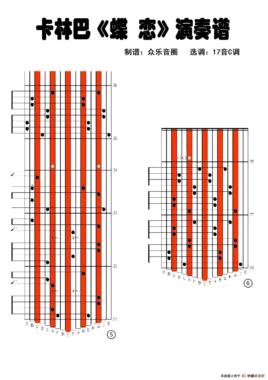 蝶恋(拇指琴卡林巴琴演奏谱)相关五线谱