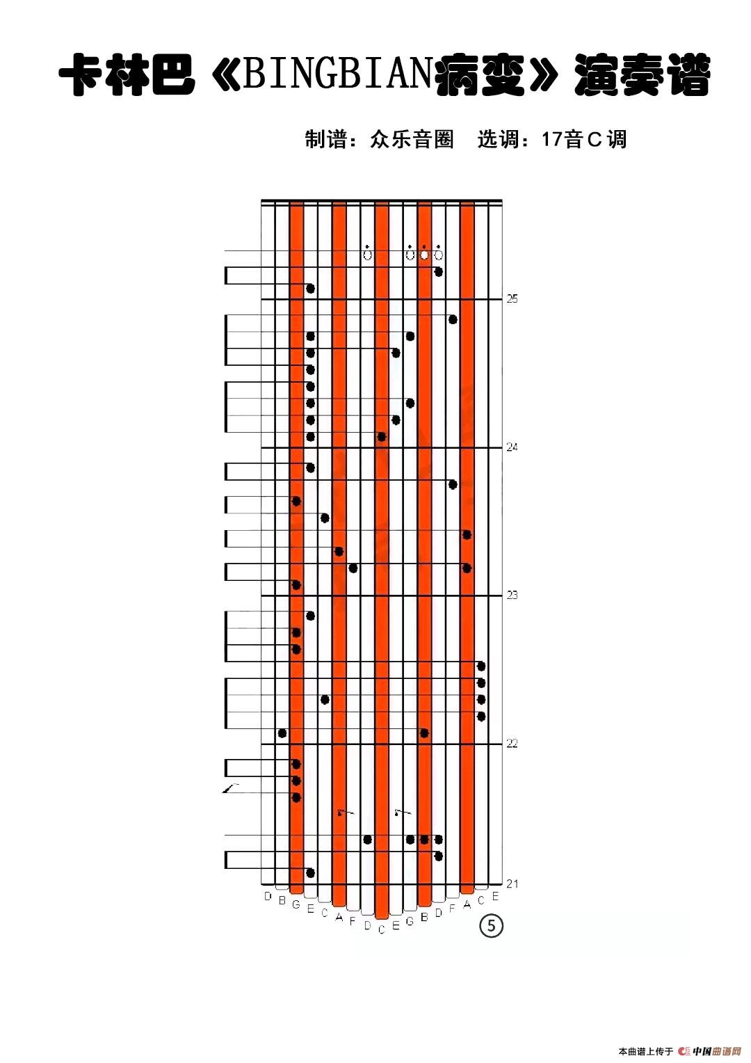 BINGBIAN病变(拇指琴卡林巴琴演奏谱)相关五线谱