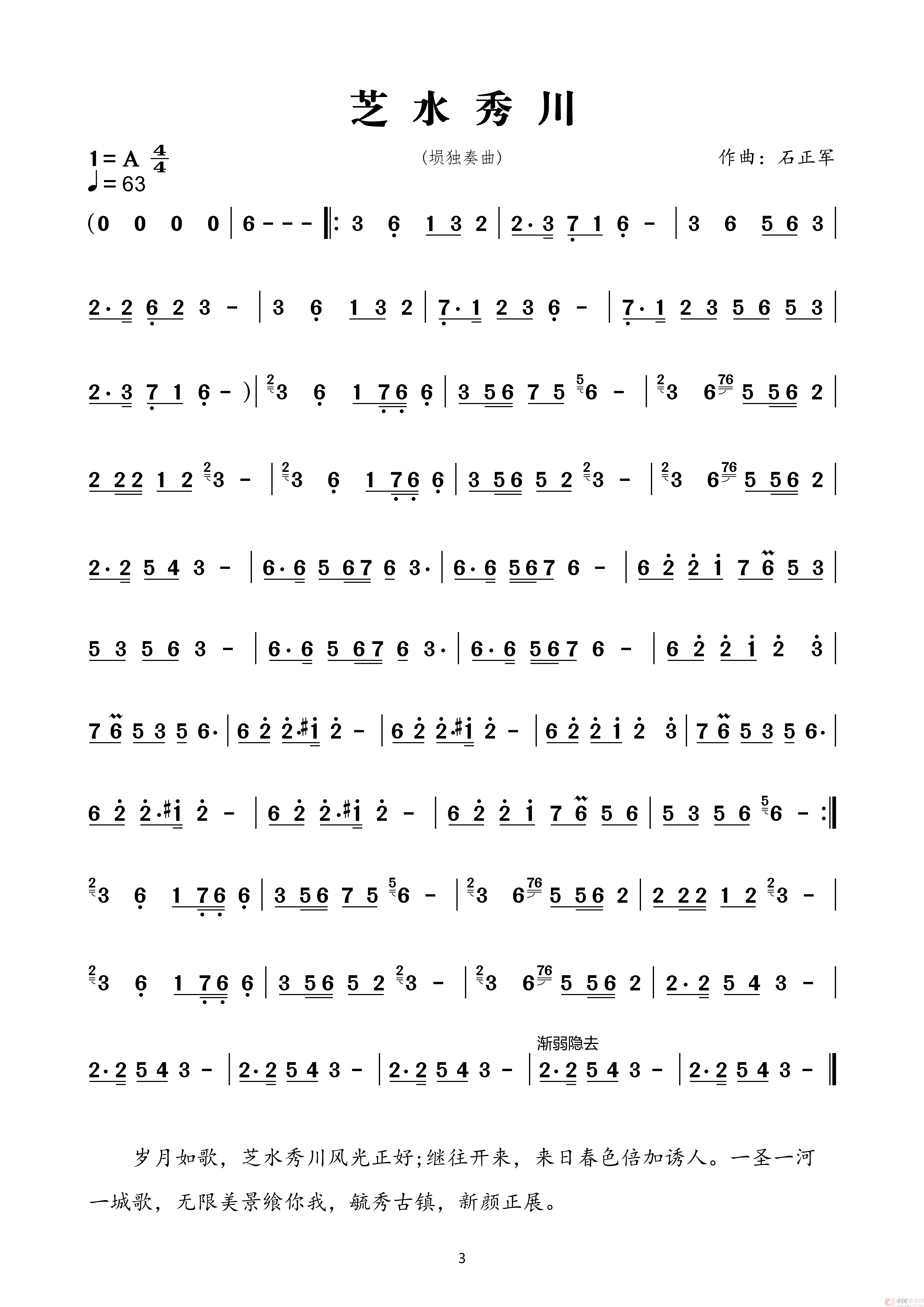 芝水秀川(埙独奏曲)相关五线谱