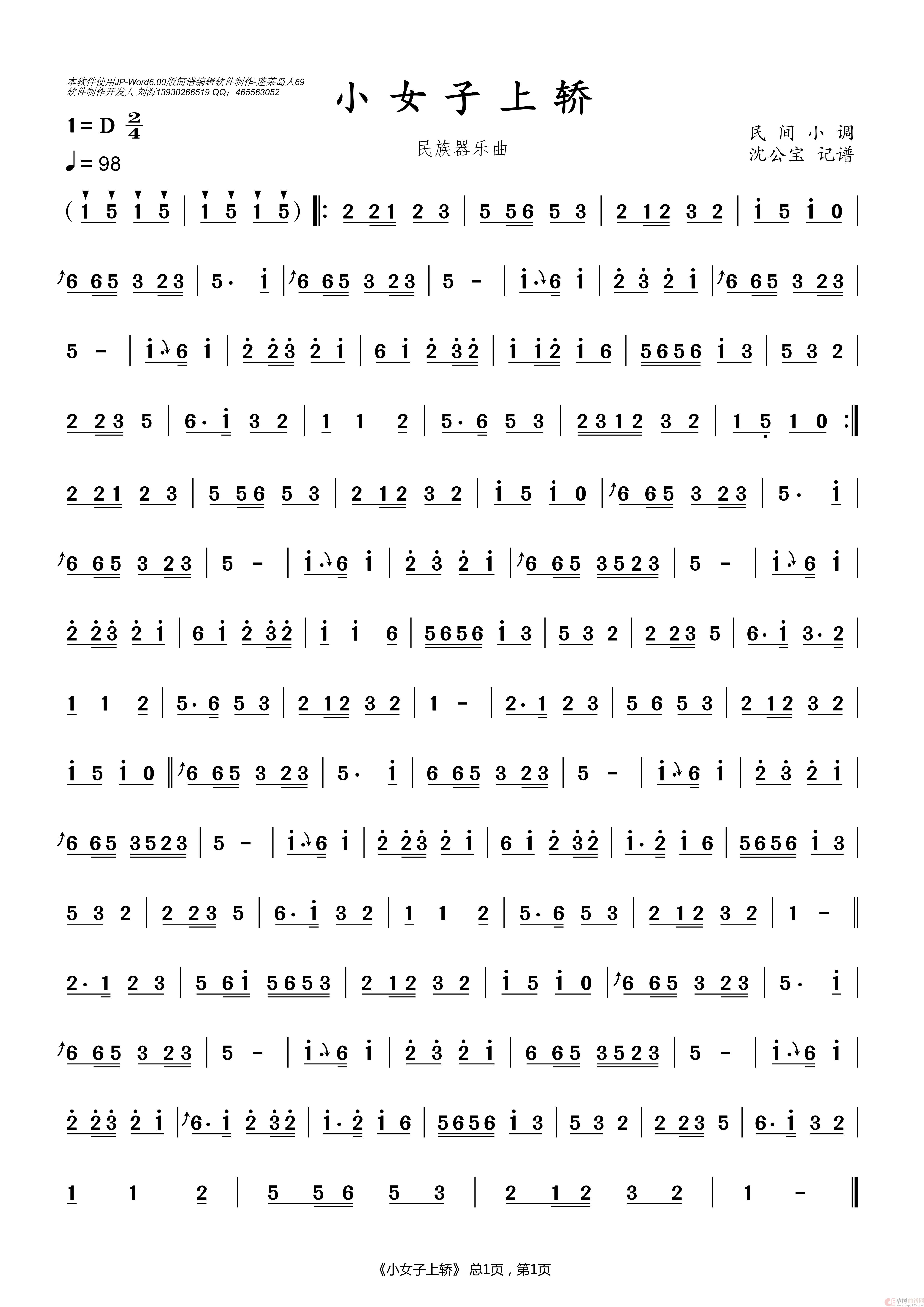 小女子上轿(民族器乐曲)相关五线谱