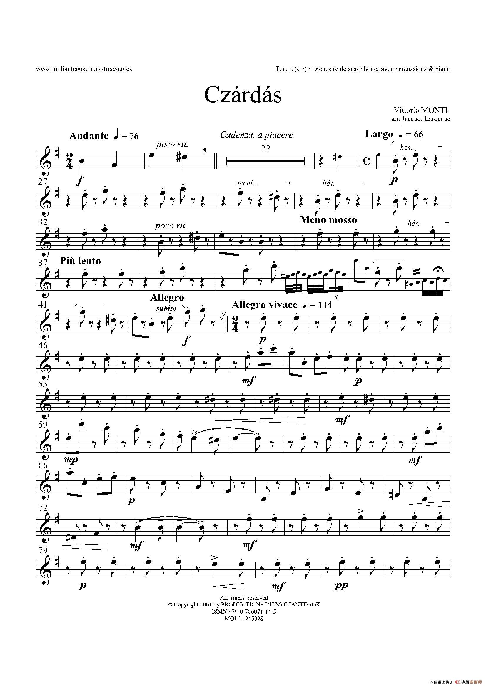 Czardas 查尔达斯(15重奏)(3支次中音萨克斯)相关五线谱