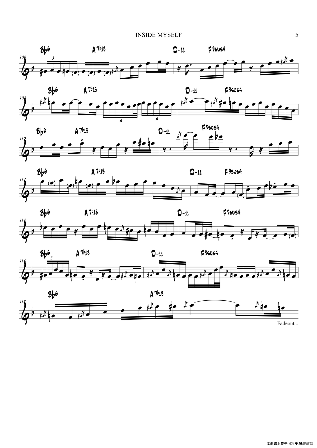 Inside My self(高音萨克斯)相关五线谱
