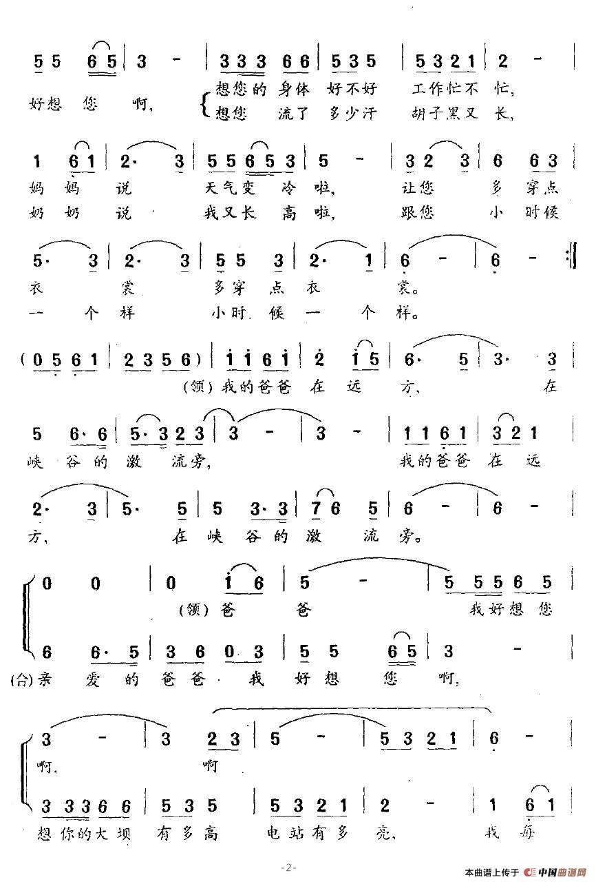 爸爸在远方(合唱)相关五线谱