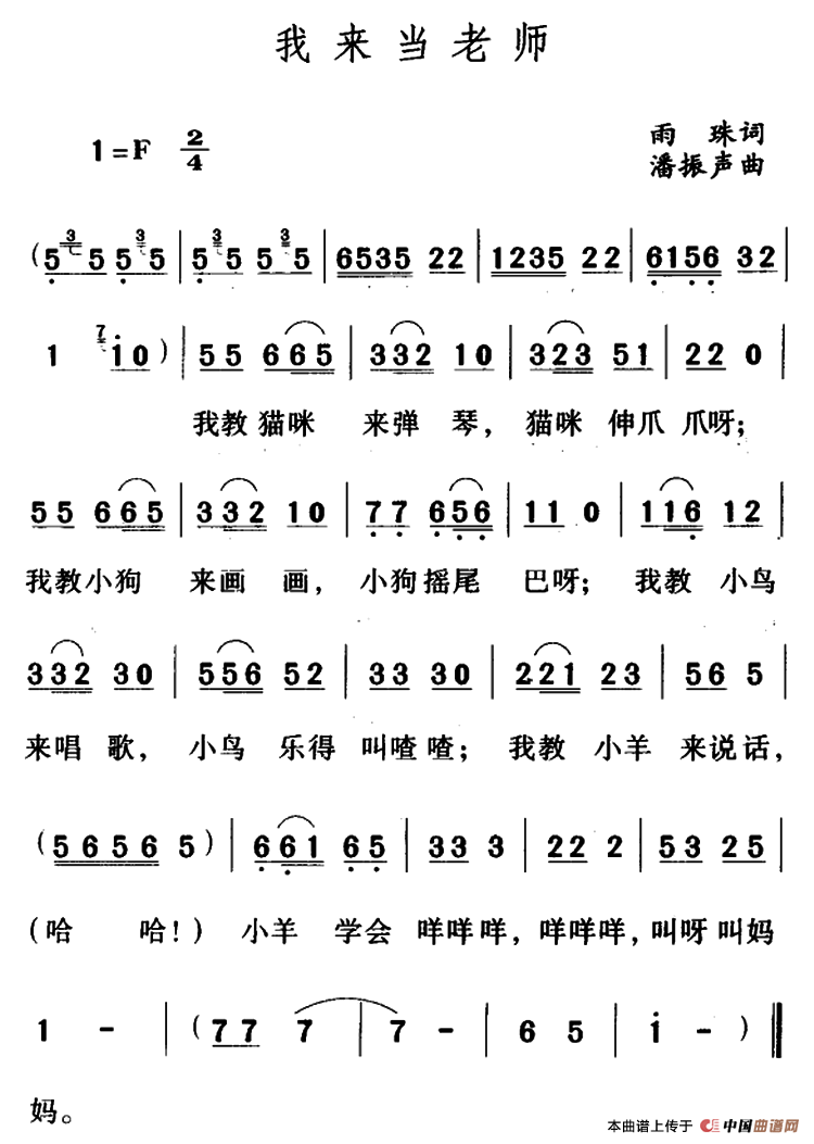 潘振声曲谱推荐小鸭子(五线谱+简谱)小娃娃跌倒啦(线、简谱混排版)牛角弯弯(韩乐群词 潘振声曲)一分钱山丹丹,红牡丹小小太阳不是我(少儿歌曲)嘀哩,滴哩春天在哪里营火熊熊有个问题谁知道(少儿歌曲)是谁吹起金唢呐春天在哪里我给太阳唱支歌(五线谱)云岭是我家(合唱)丰收的秋天爱护小树苗(线简谱混排版)春天的礼物 (肖玉琮词 潘振声曲)小鸭子(线简谱混排版)大母鸡下蛋(五线谱)红烛和花朵