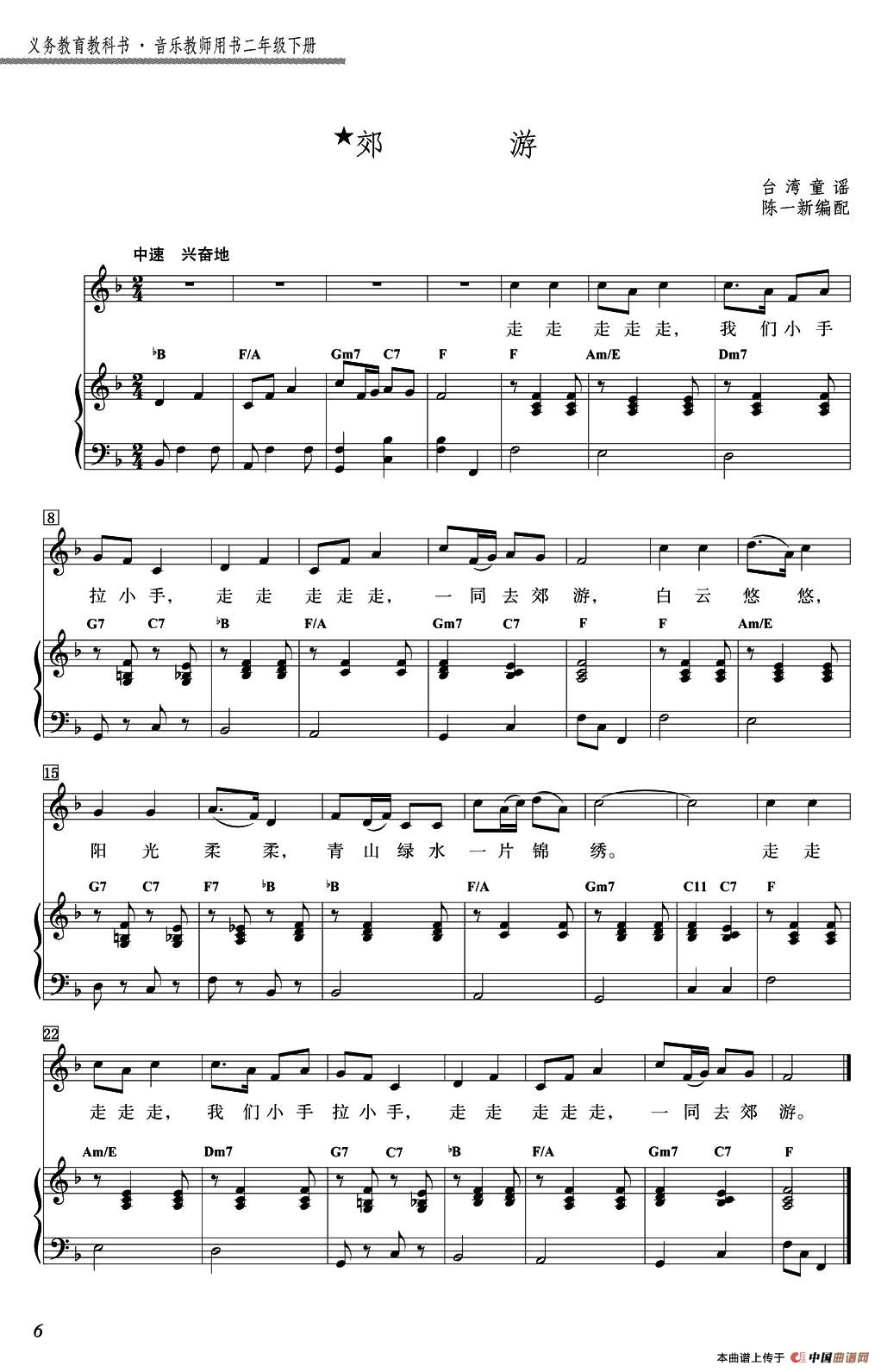 郊游(台湾童谣、陈一新配钢琴伴奏)相关五线谱