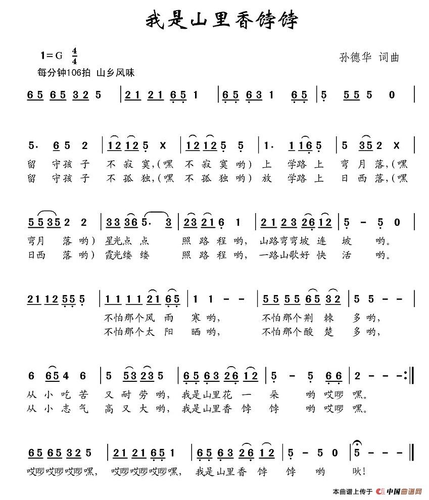 我是山里香饽饽相关五线谱