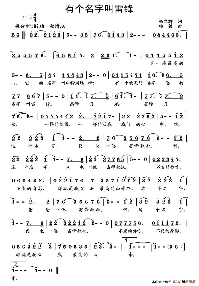 杨铭曲谱推荐雅安平安(何逢成词 杨铭曲)雪之舞西湖恋曲月之恋(吕永清词 杨铭曲)好媳妇千古江南(何丽华词 杨铭曲)我的兄弟姐妹老子和孙子刮风下雨想爸爸西湖的月亮泰山的孩子爱登山等你来相逢看海听声(闽南语歌曲、二重唱)大海老爷爷九月一号泰山石敢当(胡敦骅词 杨铭曲)陆河情大别山的红杜鹃(杨显群词 杨铭曲)提线木偶(谢万智词 杨铭曲)崛起的平坝