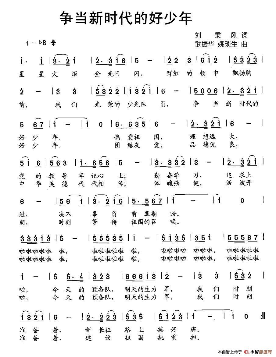 争当新时代的好少年(刘秉刚词 武振华 姚琰生曲)相关五线谱