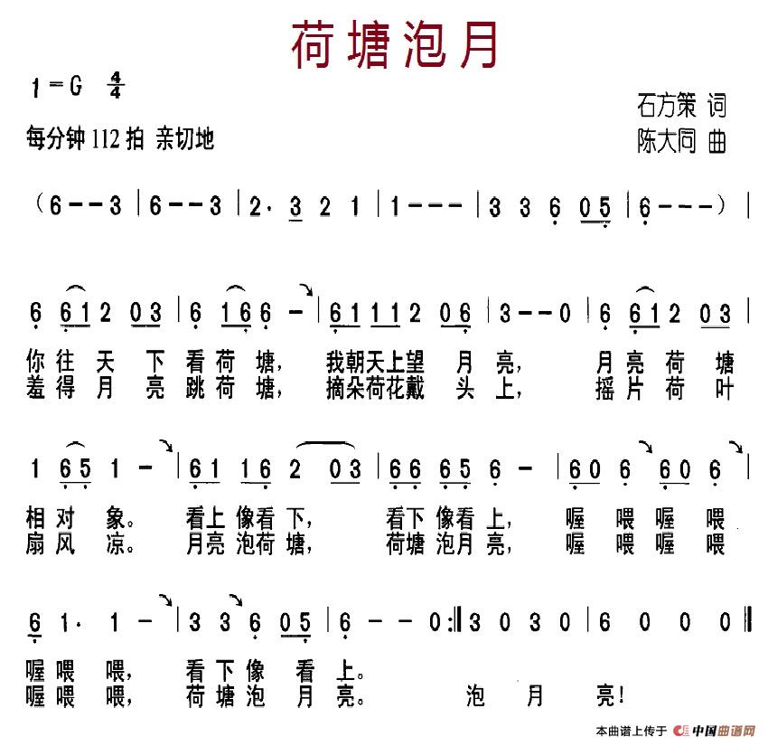 陈大同曲谱推荐无极(何也词 陈大同曲)鱼儿还乡抬起头,挺起胸请到苗家走一走(熊初保词 陈大同曲)美丽的海南(徐体健词 陈大同曲)永远友好的茉莉花和谐的春风(付云青词 陈大同曲)幸福的日子唱着过(钱建隆词 陈大同曲、正谱)雨荷(刘志毅词 陈大同曲)夕阳·故乡最后的吼声(夏雄词 陈大同曲)在圣洁的高原上(黄枰词 陈大同曲)军营绿葱葱(刘志毅词 陈大同曲)我与国旗合个影心留草原索玛花(胡泽民词 陈大同曲)坦然心欢潇洒人生(张高贤词 陈大同曲)小闹钟和小懒虫谁来陪我睡