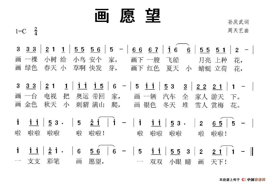 画愿望相关五线谱