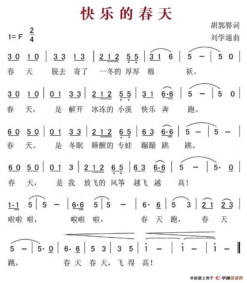 快乐的春天(胡敦骅词 刘学通曲)相关五线谱