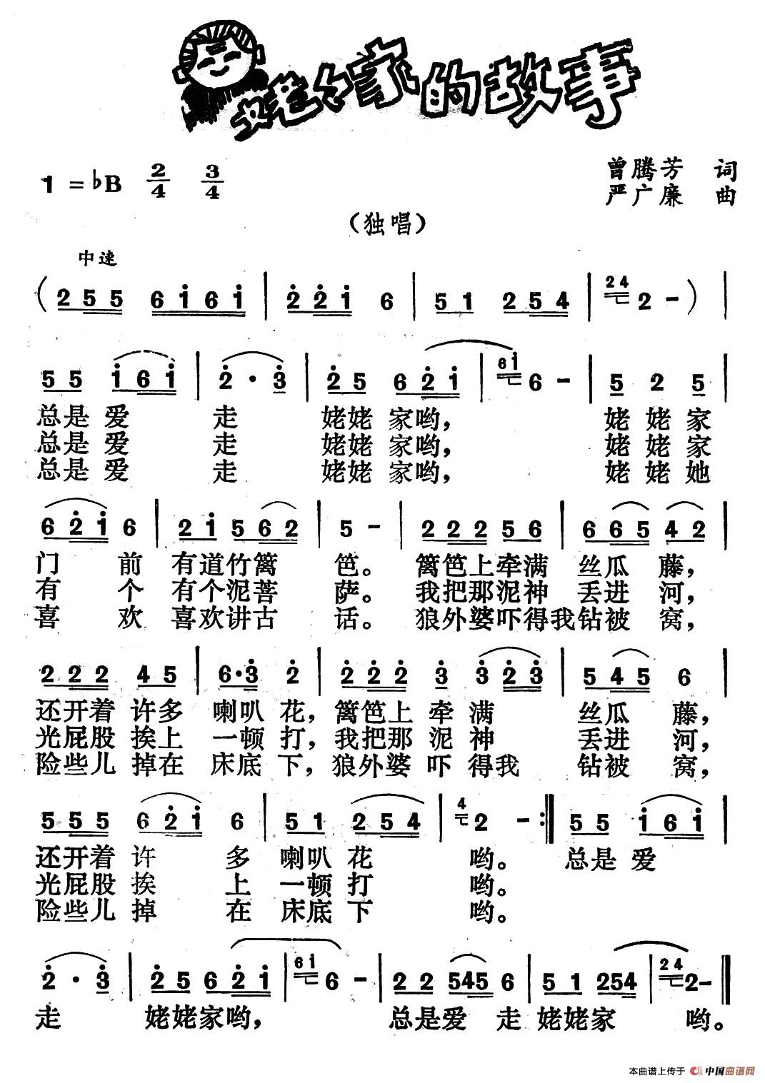 姥姥家的故事(曾腾芳词 严广廉曲)相关五线谱