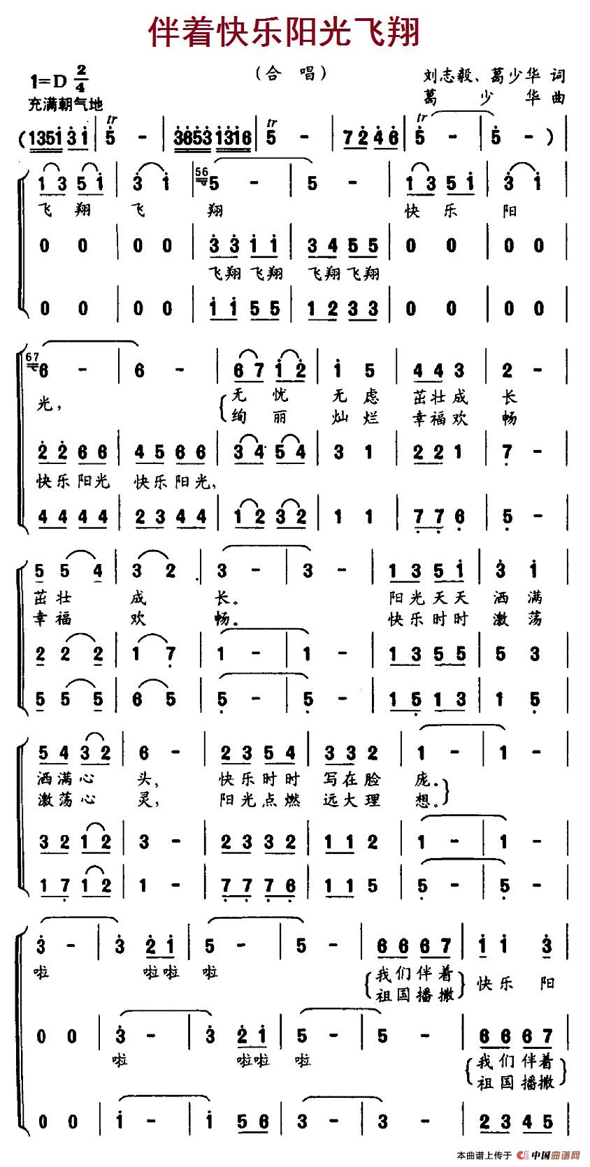 伴着快乐阳光飞翔(合唱)相关五线谱