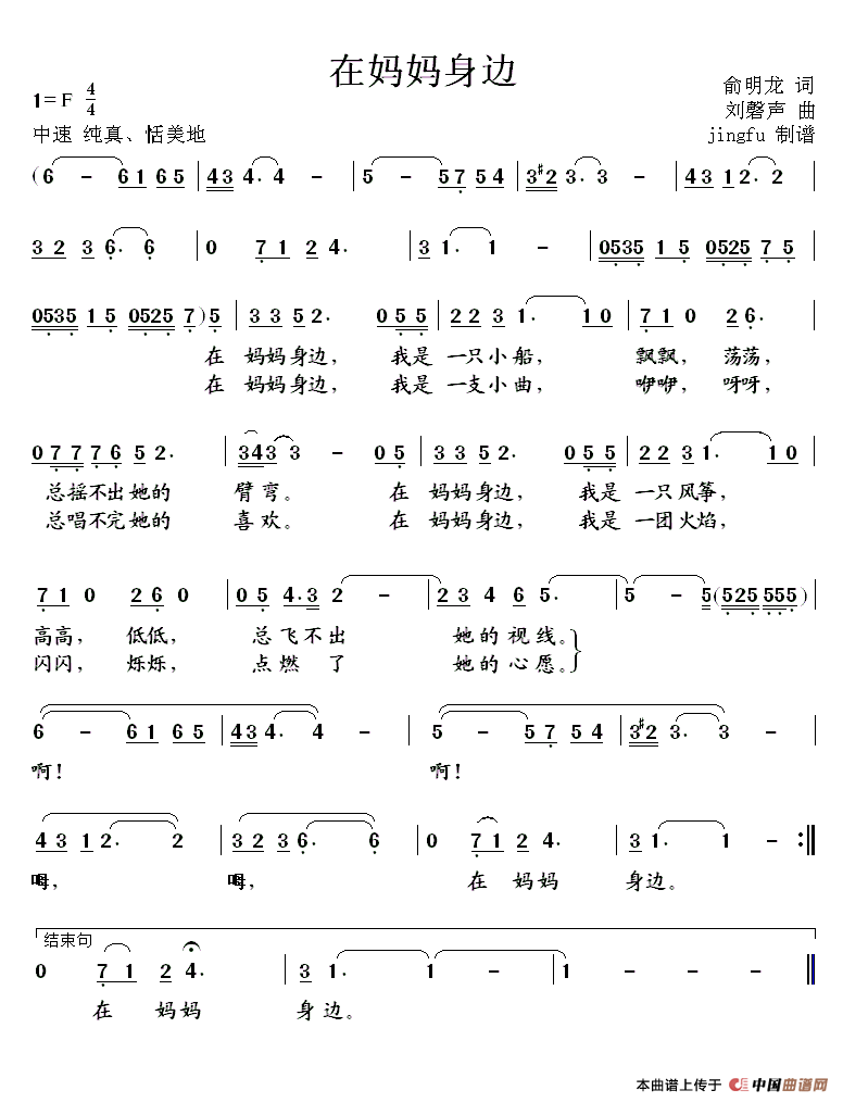刘馨声曲谱推荐快乐的小天鹅(独唱+伴唱)星星 火炬 太阳(童声齐唱、合唱)春天的翅膀妈妈用爱编摇篮党和我们最亲最亲花瓣小船(合唱)把心儿种在春天里(少儿歌曲)亘古荆江听妈妈歌唱春天的故事(李幼容词 刘馨声曲)春天的标点